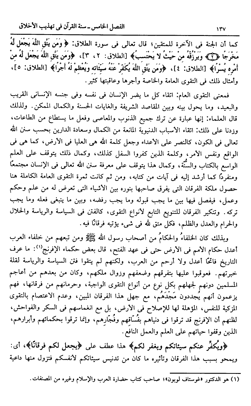 (1) هو الدكتور «غوستاف لوبون»؛ صاحب كتاب حضارة العرب والإسلام وغيره من المصنفات.
