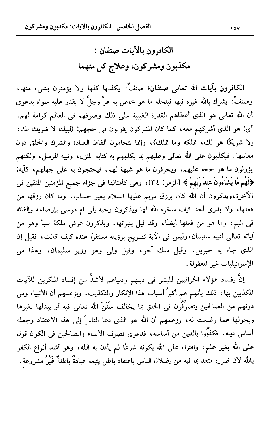 الكافرون بالآيات صنفان: مكذبون ومشركون، وعلاج كل منهما