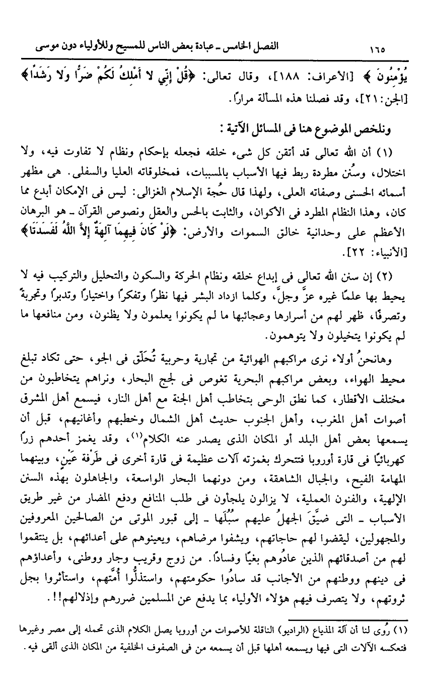 (1) روى لنا أن آلة المذياع (الراديو) الناقلة للأصوات من أوروبا يصل الكلام الذى تحمله إلى مصر وغيرها فتعكسه الآلات التى فيها ويسمعه أهلها قبل أن يسمعه من فى الصفوف الخلفية من المكان الذى ألقى فيه.
