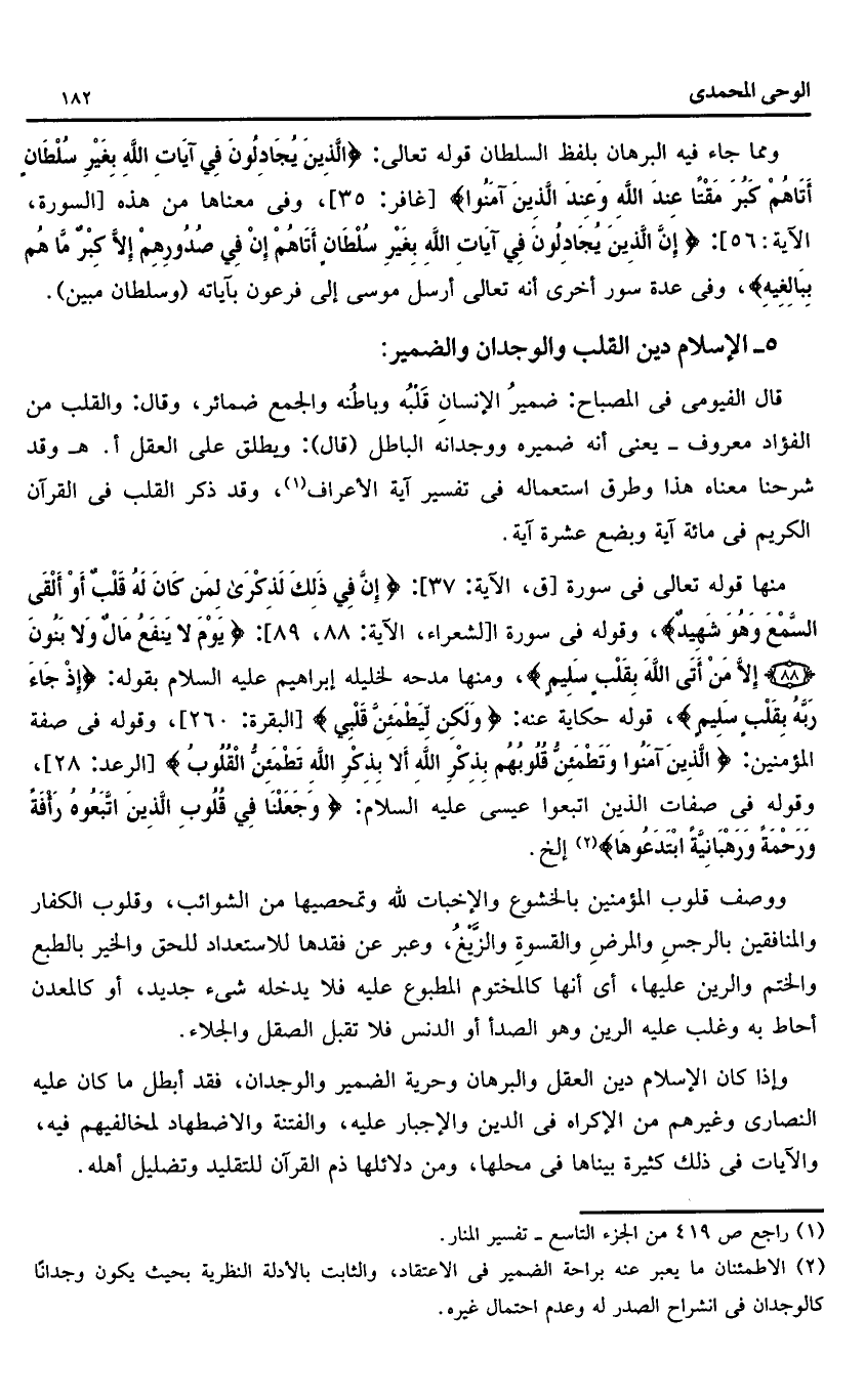 (2) الاطمئنان ما يعبر عنه براحة الضمير فى الاعتقاد، والثابت بالأدلة النظرية بحيث يكون وجدانا كالوجدان فى انشراح الصدر له وعدم احتمال غيره.