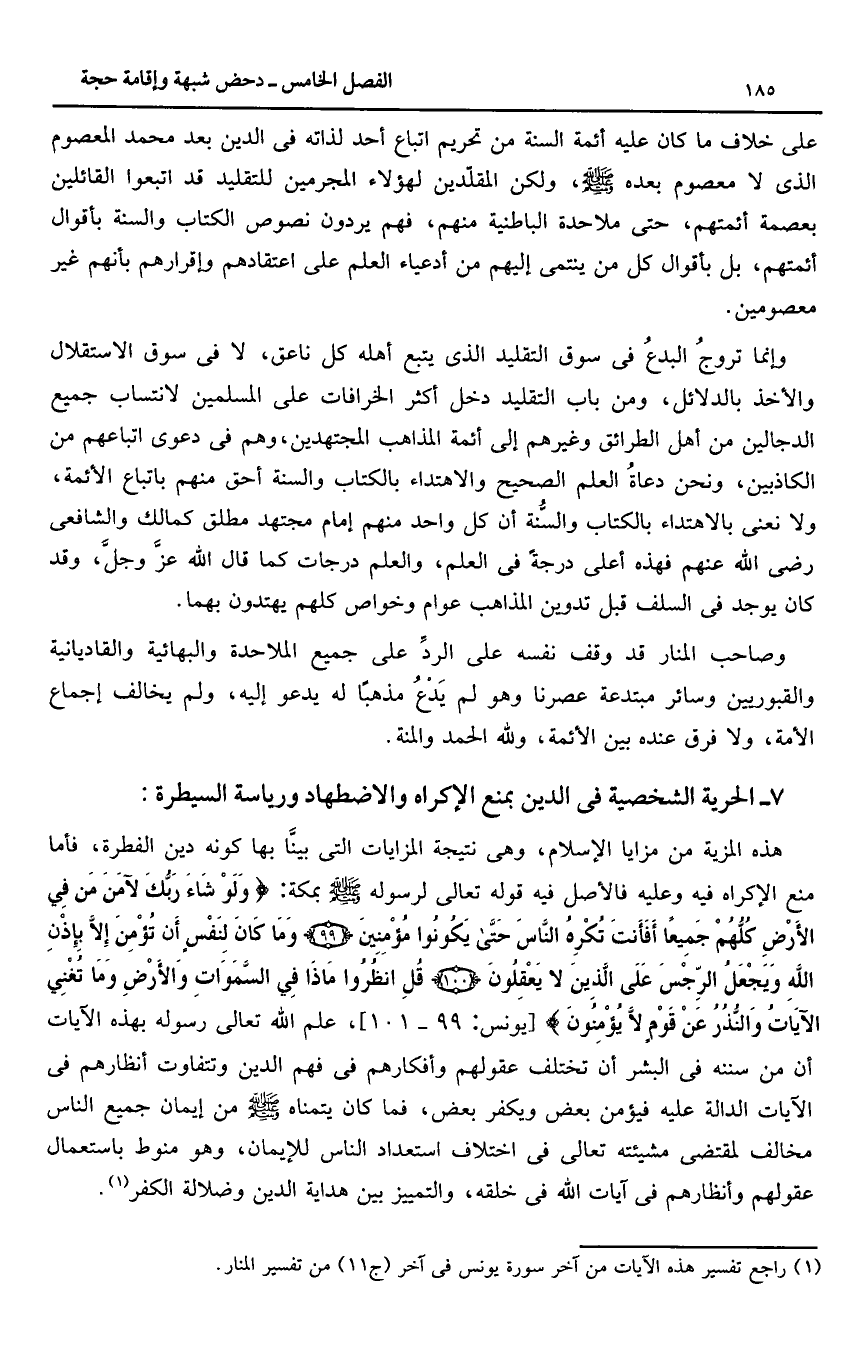 7 - الحرية الشخصية فى الدين بمنع الإكراه والاضطهاد ورئاسة السيطرة: