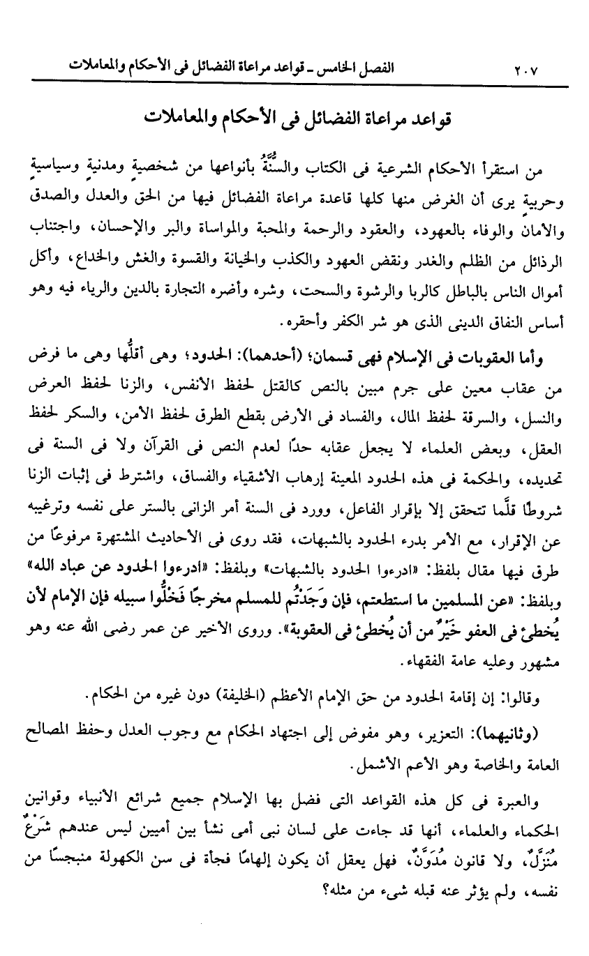 قواعد مراعاة الفضائل فى الأحكام والمعاملات