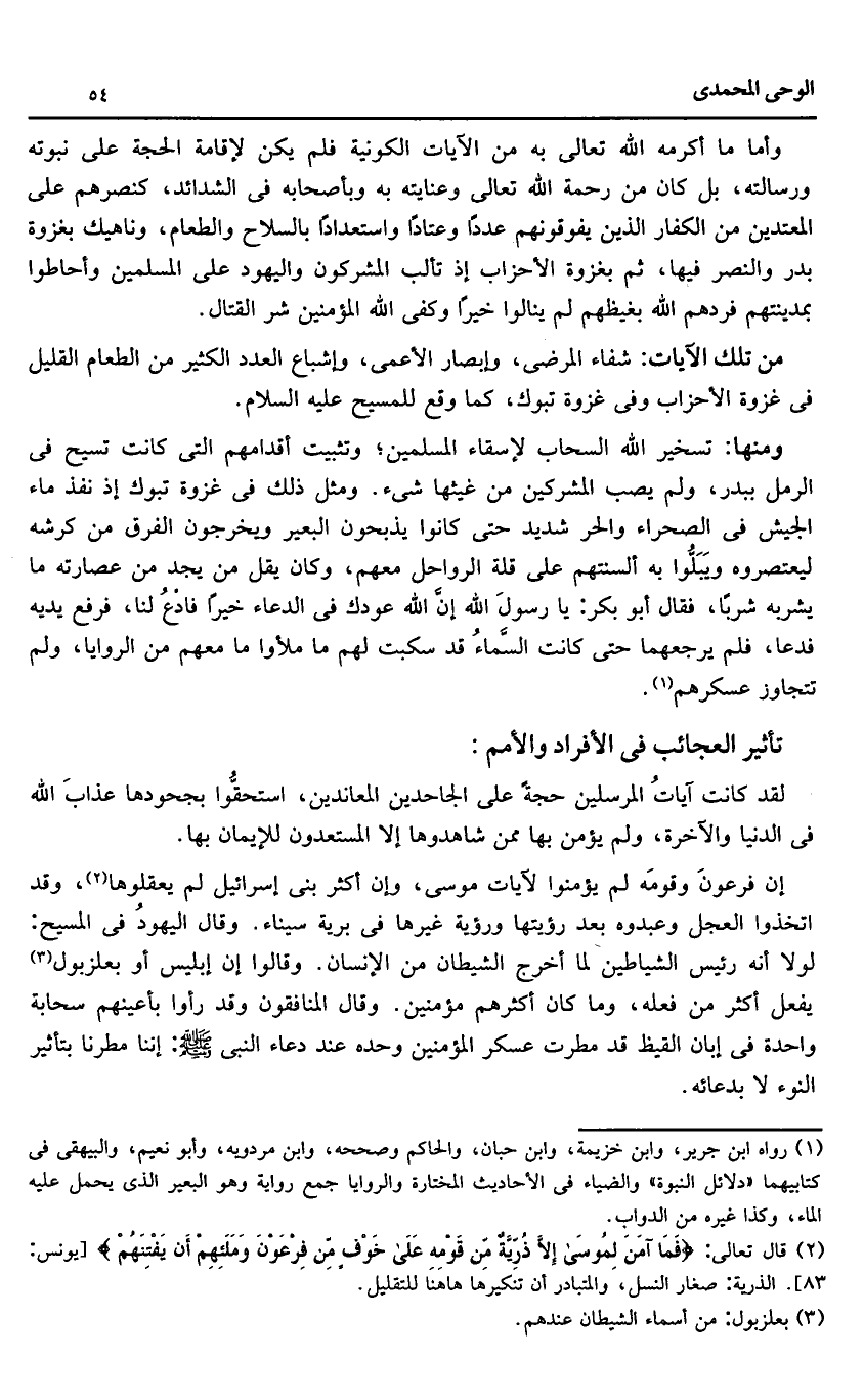 لولا أنه رئيس الشياطين لما أخرج الشيطان من الإنسان. وقالوا إن إبليس أو بعلزبول «3» يفعل أكثر من فعله، وما كان أكثرهم مؤمنين. وقال المنافقون وقد رأوا بأعينهم سحابة واحدة فى إبان القيظ قد مطرت عسكر المؤمنين وحده عند دعاء النبى صلّى الله عليه وسلم: إننا مطرنا بتأثير النوء لا بدعائه.
