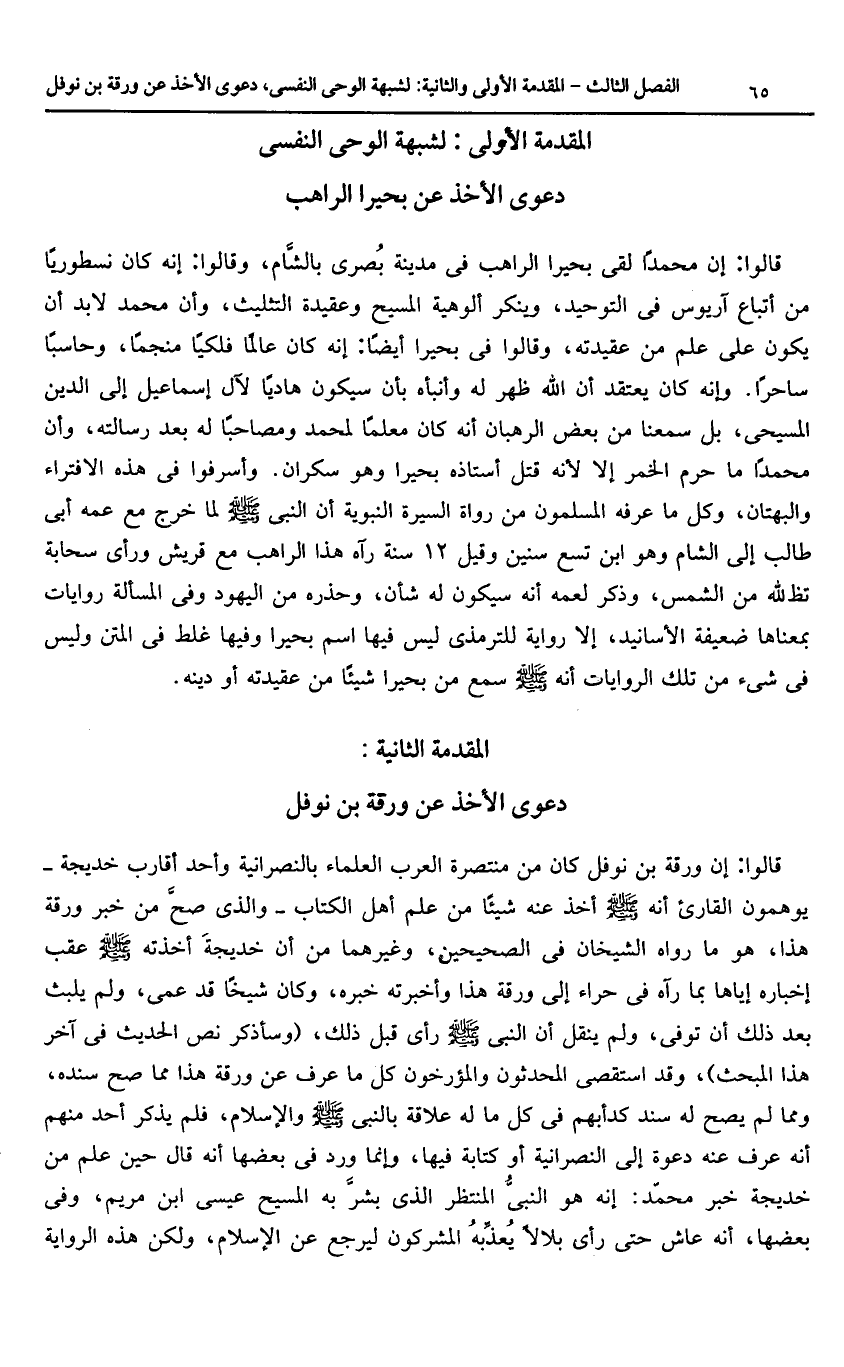 المقدمة الأولى: لشبهة الوحى النفسى دعوى الأخذ عن بحيرا الراهب
