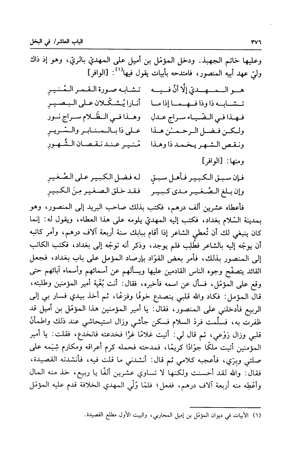 وعليها خاتم الجهبذ ودخل المؤمل بن أميل على المهدي بالري وهو إذ ذاك ولي عهد أبيه المنصور فامتدحه بأبيات يقول فيها