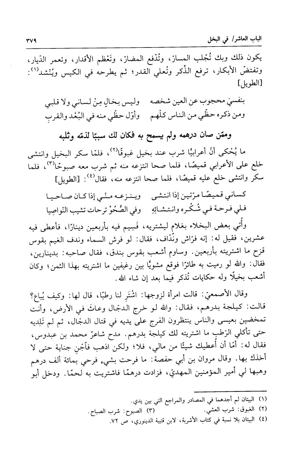 وممن صان درهمه ولم يسمح به ... فكان ذلك سبباً لذمّه وثلبه