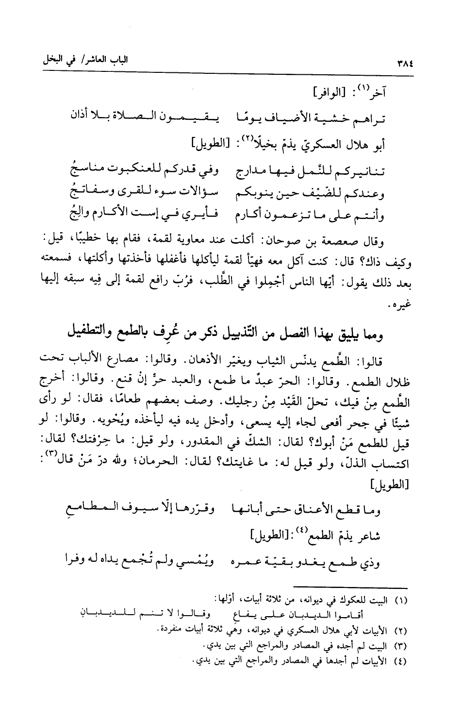 ومما يليق بهذا الفصل من التذييل ... ذكر من عرف بالطمع والتطفيل