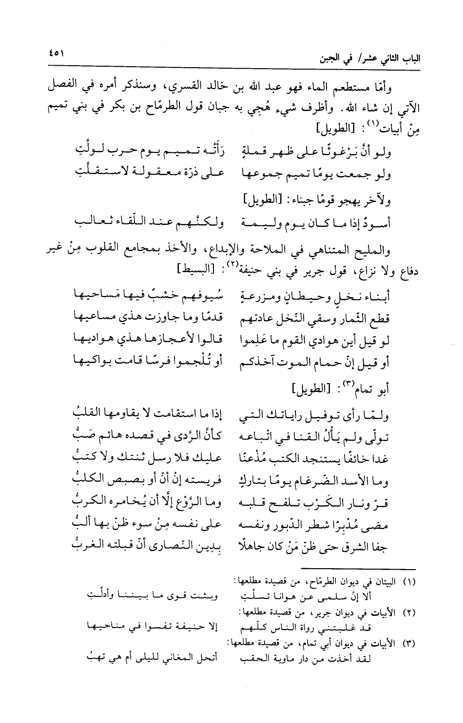 وأما مستطعم الماء فهو عبد الله بن خالد القسري وسنذكر أمره في الفصل الآتي إن شاء الله وأظرف شيء هجى به جبان قول الطرماح بن بكر في بني تميم من أبيات