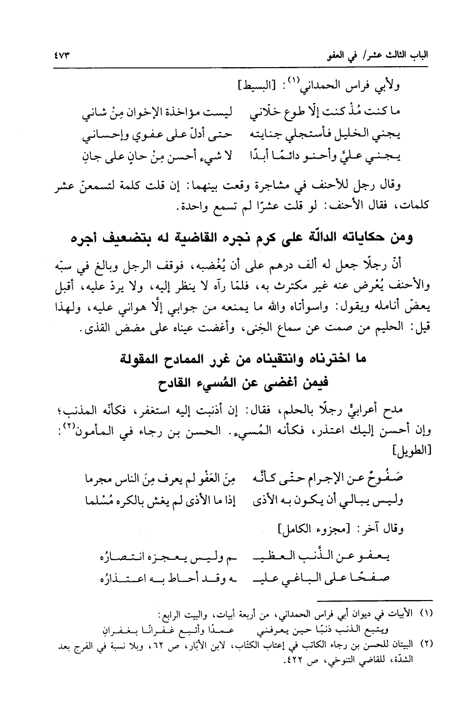 ما اخترناه وانتقيناه من غرر الممادح ... المقولة فيمن أغضى عن المسئ القادح
