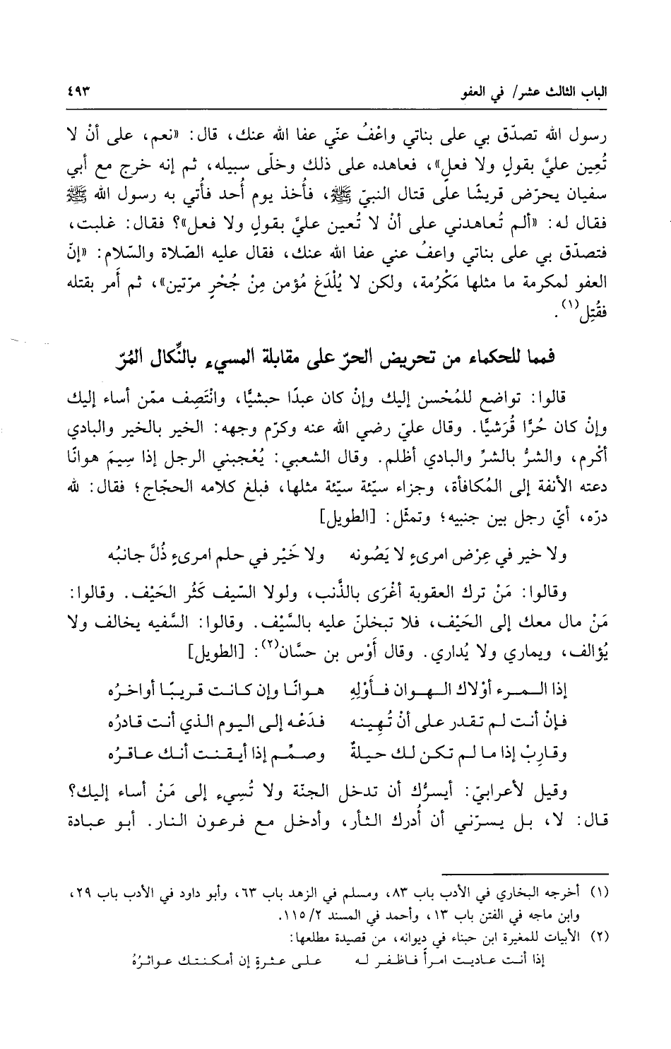 فمما للحكماء من تحريض الحرّ ... على مقابلة المسئ بالنكال المر
