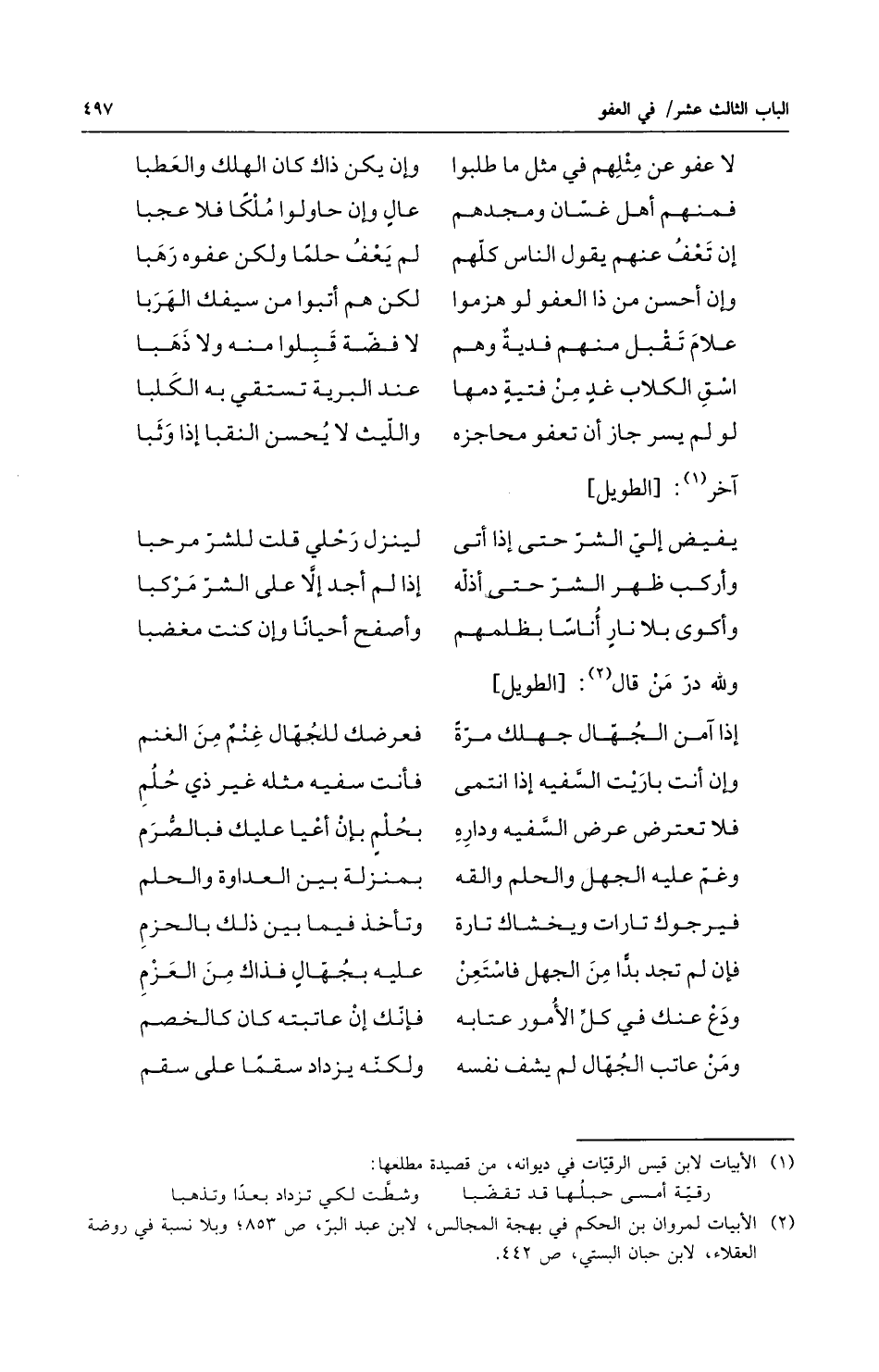 إن تعف عنهم يقول الناس كلهم ... لم يعف حلماً ولكن عفوه رهبا