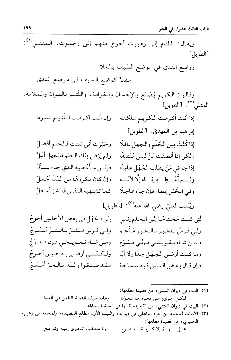 ويقال اللئام إلى رهبوت أحوج منهم إلى رحموت المتنبي ووضع الندى في موضع السيف بالعلا مضر كوضع السيف في موضع الندى وقالوا الكريم يصلح بالاحسان والكرامة واللئيم بالهوان والملامسة المتنبي