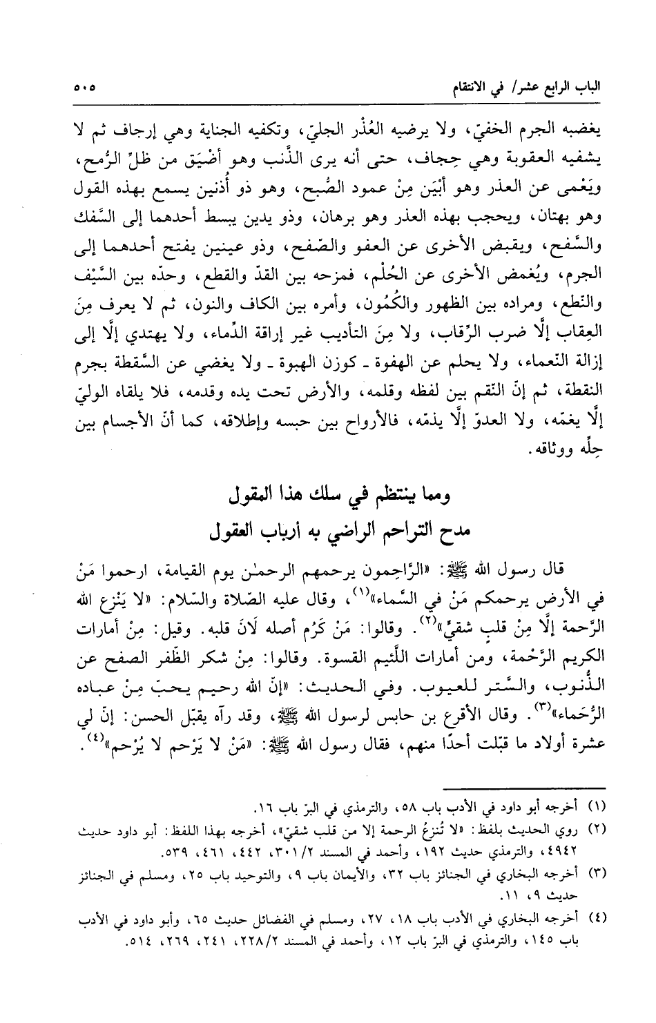 ومما ينتظم في سلك هذا المقول ... مدح التراحم الراضي به أرباب العقول