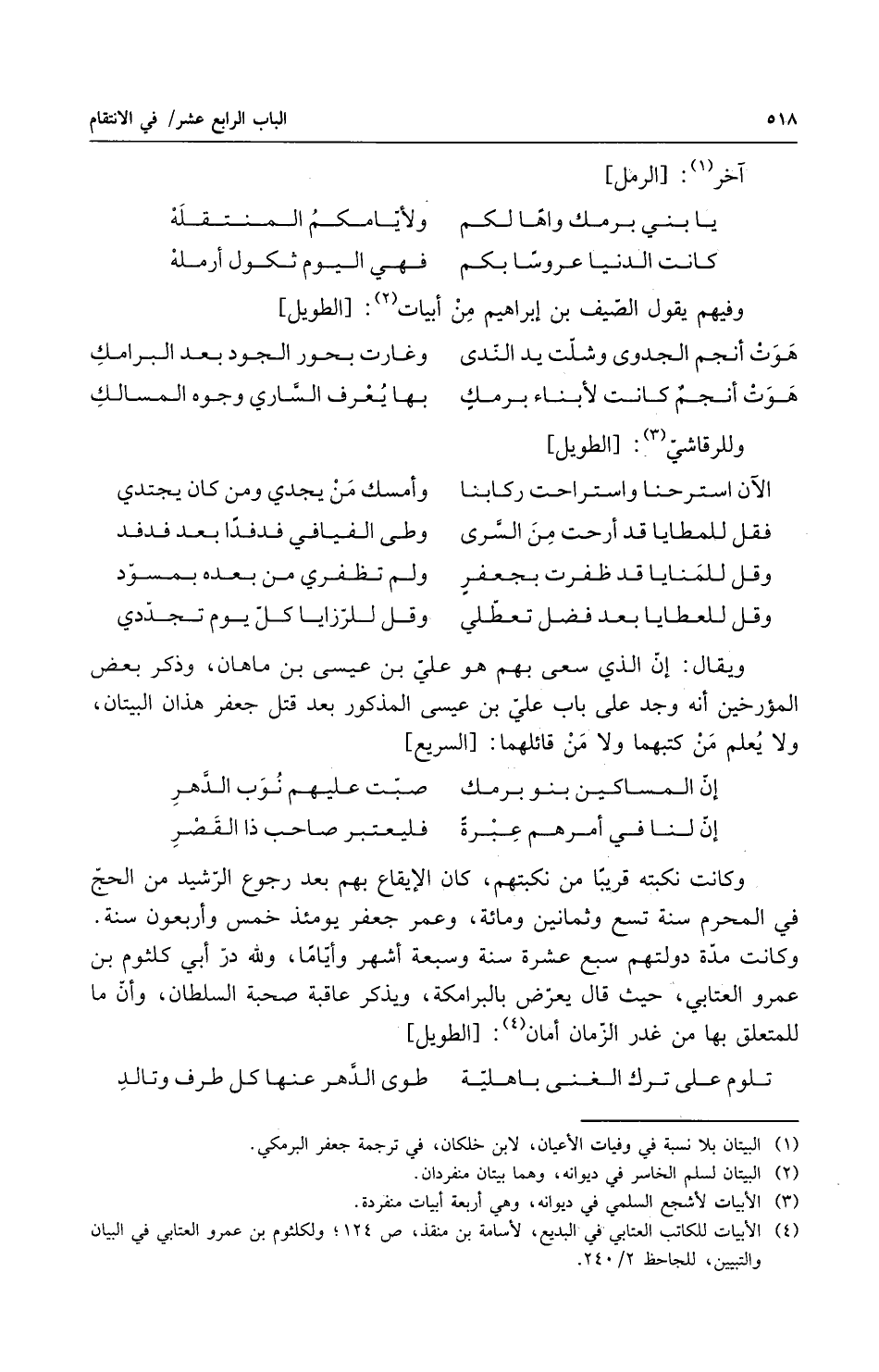 يا بني برمك وأهالكم ... ولأيامكم المتنقلة