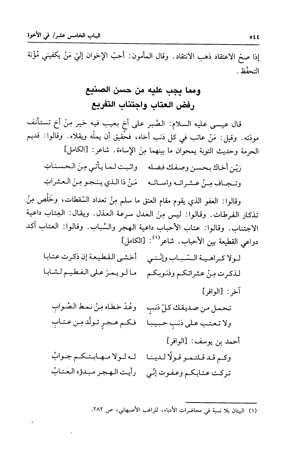 ومما يجب عليه من حسن الصنيع ... رفض العتاب واجتناب التفريع