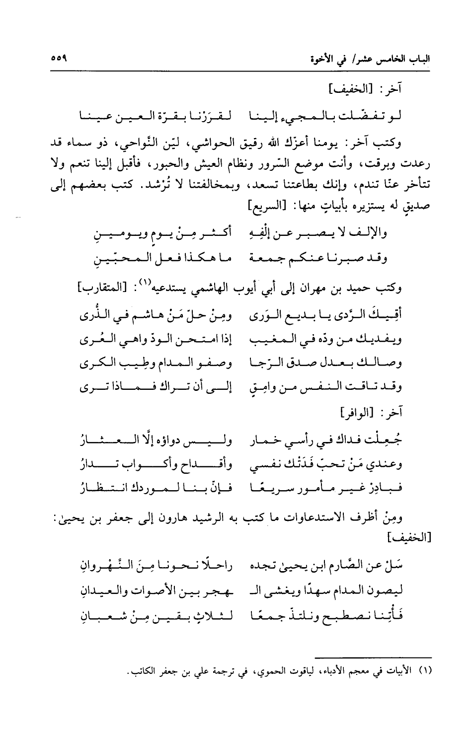 وكتب حميد بن مهران إلى أبي أيوب الهاشمي يستدعيه