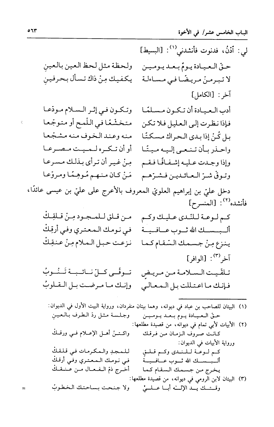 دخل علي بن إبراهيم العلوي المعروف بالأعرج على علي بن عيسى عائداً فأنشده