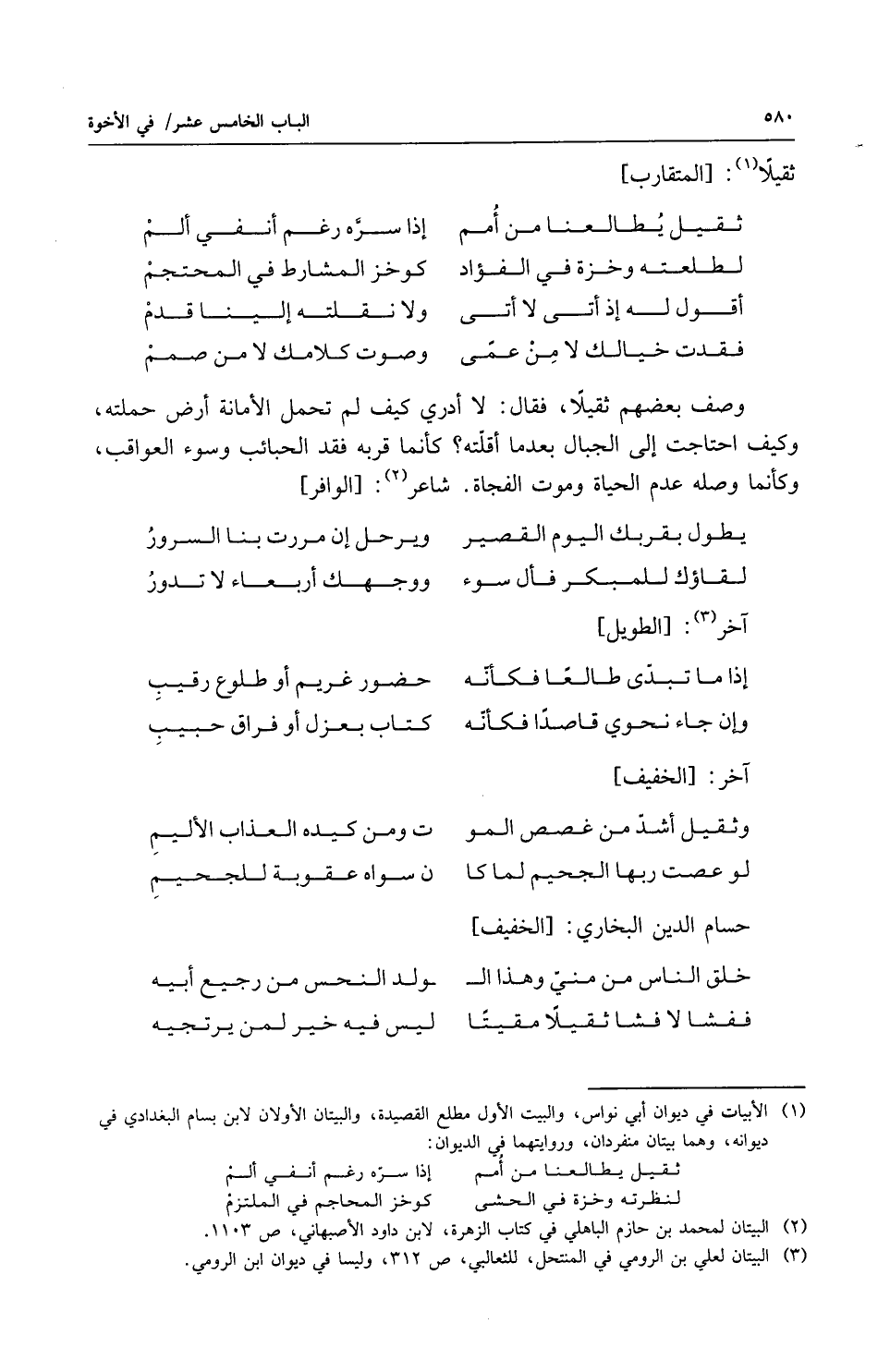 وصف بعضهم ثقيلاً فقال لا أدري كيف لم تحمل الأمانة أرض حملته وكيف احتاجت إلى الجبال بعد ما أقلته كأنما قربه فقد الحبائب وسوء العواقب وكأنما وصله عدم الحياة وموت الفجاة شاعر