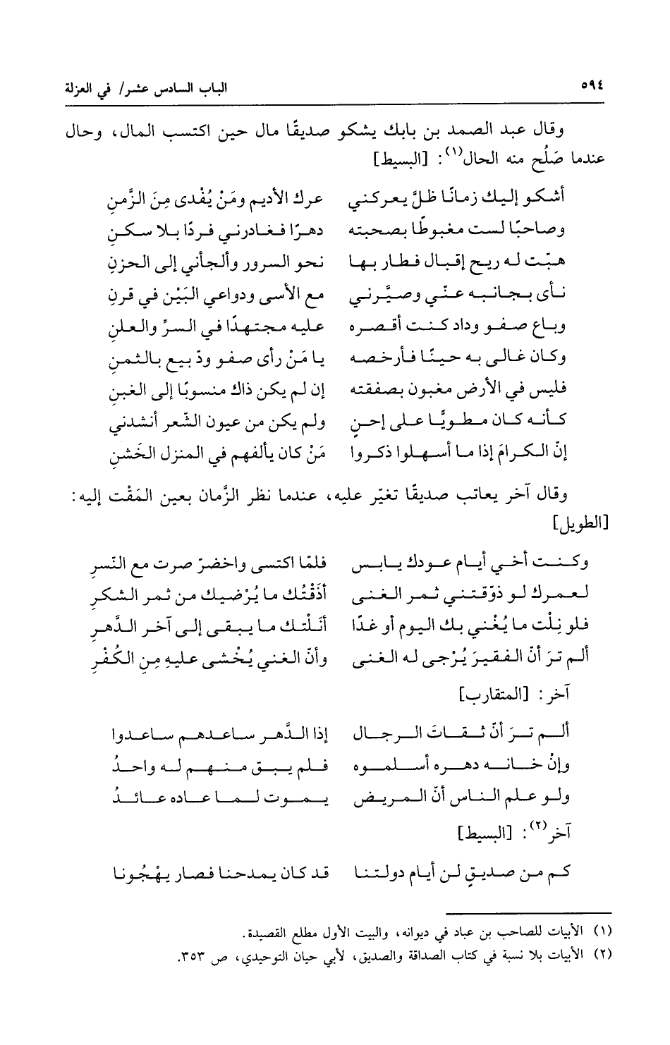 وقال عبد الصمد بن بابك يشكو صديقاً مال حين اكتسب المال وحال عندما صلح منه الحال