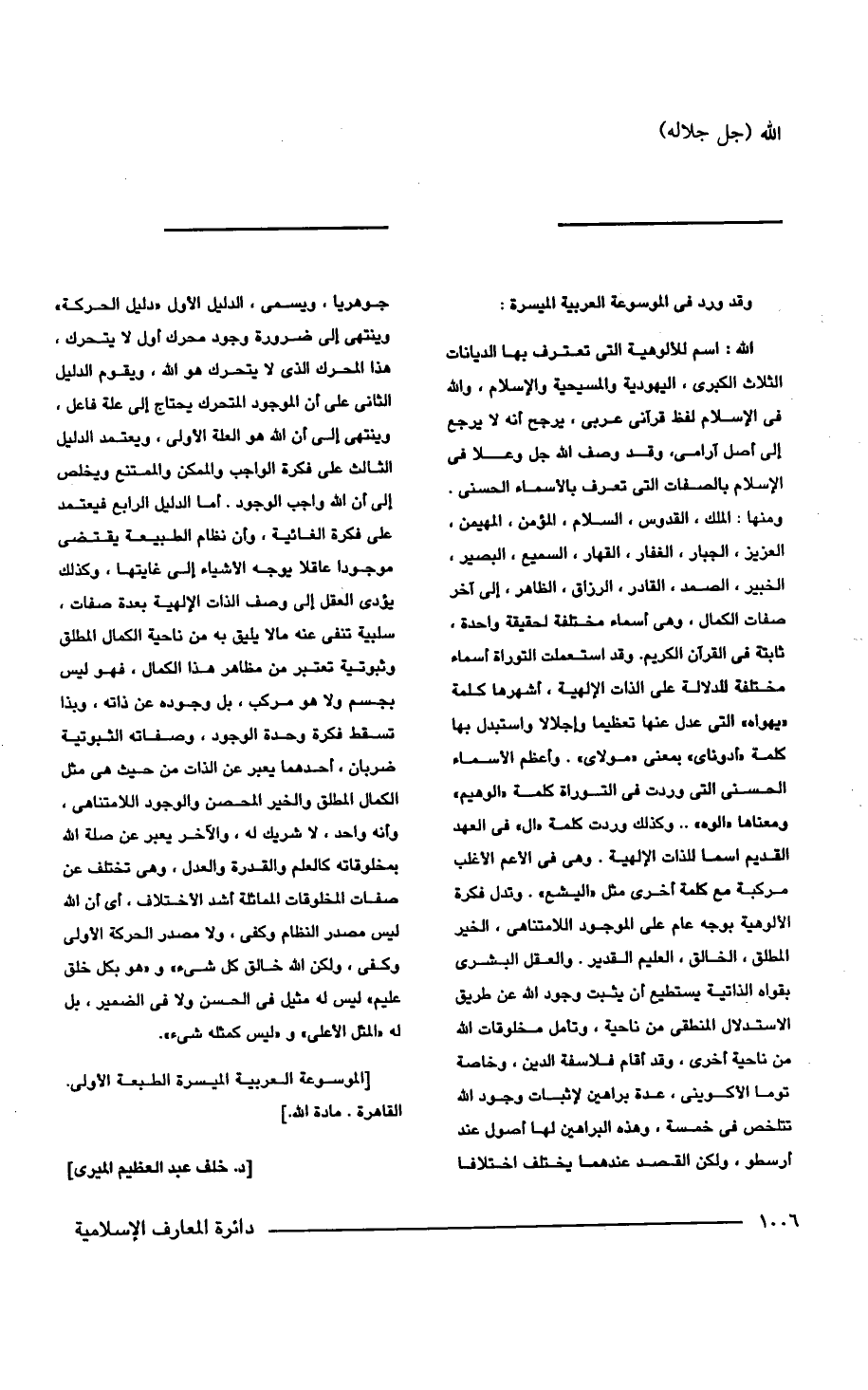 [الموسوعة العربية الميسرة الطبعة الأولى. القاهرة. مادة الله]