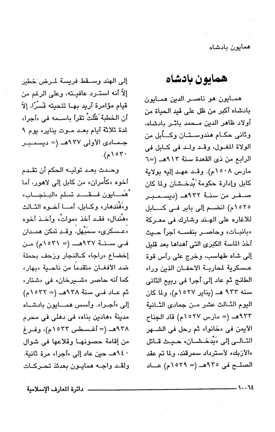 همايون هو ناصر الدين همايون بادشاه أكبر من ظل على قيد الحياة من أولاد ظاهر الدين محمد باثر بادشاه، وثانى حكام هندوستان وكابُل من الولاة المغول، وقد ولد فى كابُل فى الرابع من ذى القعدة سنة 913 هـ (= 6 مارس 1508 م). وقد عهد إليه بولاية كابل وإدارة حكومة بَدْخشان ولما كان صفر من سنة 932 هـ (ديسمبر 1525 م) انضم إلى بابر فى كابل للاغاره على الهند وشارك فى معركة "بانبات" وحاصر بنفسه آجرًا حيث أخذ الماسة الكبرى التى أهداها بعد قليل إلى شاه طهاسب، وخرج على رأس قوة عسكرية لمحاربة الاحفان الذين وراء الطانج ثم عاد إلى أجرا فى ربيع الثانى سنه 933 هـ (يناير 1527 م)، ولما كان اليوم الثالث عشر من جمادى الثانية 933 هـ (= مارس 1527 م) قاد الجناح الأيمن فى "خانوا" ثم رحل فى الشهر التالى إلى "بَدْخشان" حيث قاتل "الأزبك" لأسترداد سمرقند، ولما تم عقد الصلح فى 935 هـ (= 1529 م) عاد إلى الهند وسقط فريسة لمرض خطير إلّا أنه استرد عافيته، وعلى الرغم من قيام مؤامرة أريد بها تنحيته قَسْرًا، إلّا أن الخطبةَ ظّلتْ تقرأ باسمه فى "أجرا" لمدة ثلاثة أيام بعد موت يناير" يوم 9 جمادى الأولى 937 هـ (= ديسمبر 1530 م).