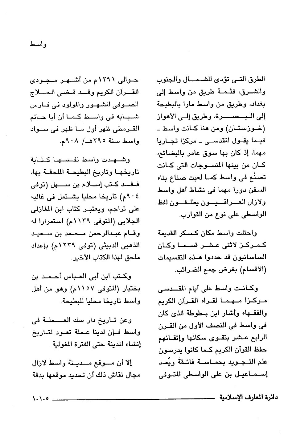 وشهدت واسط نفسها كتابة تاريخها وتاريخ البطيحة الملحقة بها، فقد كتب إسلام بن سهل (توفى 904 م) تاريخا محليا يشتمل فى غالبه على تراجم، ويعتبر كتاب ابن المغازلى الجلابى (المتوفى 1239 م) استمرارا له وقام عبد الرحمن محمد بن سعيد الذهبى الدبيثى (توفى 1239 م) بإعداد ملحق لهذا الكتاب الأخير.