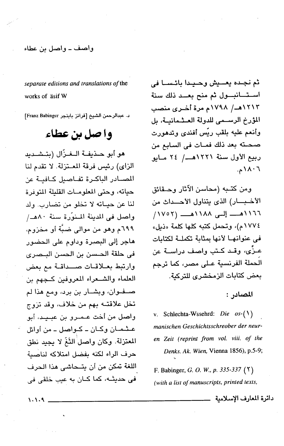 (2) F. Babinger, G. 0. W., p. 335 - 337 (with a list of manuscript, sprinted texts, separate editions and translations of the works of Asif W