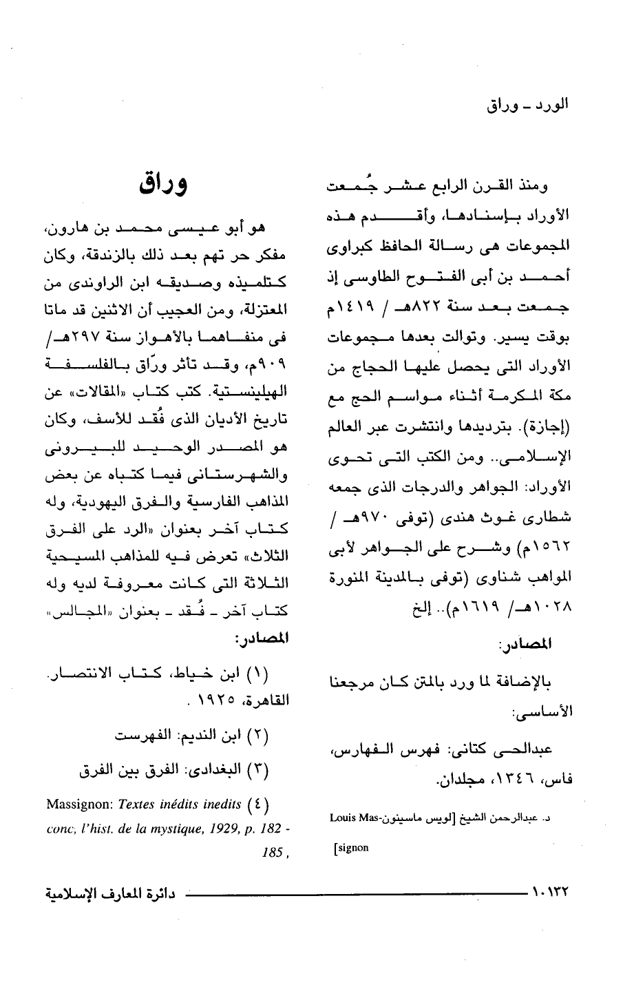 (4) Massignon: Textes inedits inedits conc, l'hist de la mystique, 1929, p. 182 - 185