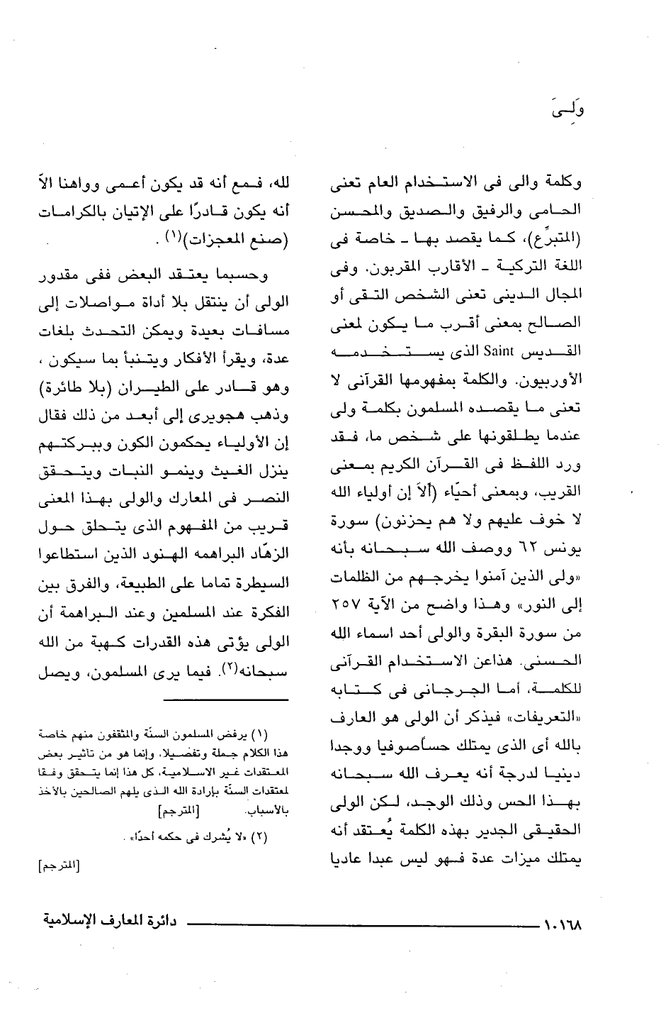 (¬1) يرفض المسلمون السنّة والمثقفون منهم خاصة هذا الكلام جملة وتفصيلا، وإنما هو من تأثير بعض المعتقدات غير الإسلامية، كل هذا إنما يتحقق وفقا لمعتقدات السنة بإرادة اللَّه الذى يلهم الصالحين بالأخذ بالأسباب [المترجم]