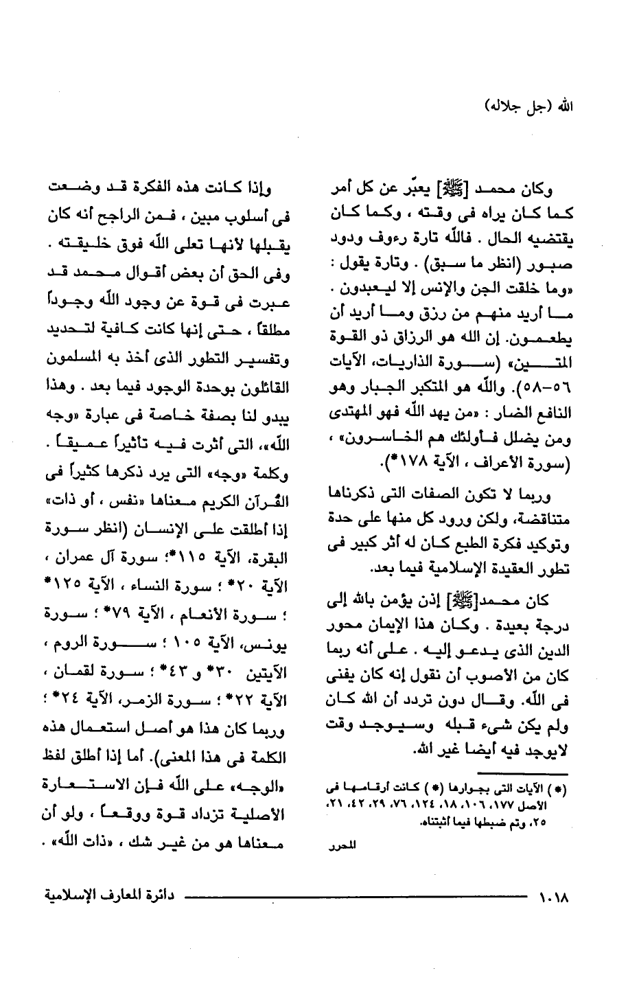 البقرة، الآية 115 *؛ سورة آل عمران، الآية. 20 * سورة النساء، الآية 125 *؛ سورة الأنعام، الآية 79؛ سورة يونس، الآية 105؛ سورة الروم، الآيتين 30 * و 43 *؛ سورة لقمان، الآية 22 *؛ سورة الزمر، الآية 24 *؛ وربما كان هذا هو أصل استعمال هذه الكلمة فى هذا المعنى). أما إذا أطلق لفظ "الوجه: على الله فإن الاستعارة الأصلية تزداد قوة ووقعًا، ولو أن معناها هو من غير شك، "ذات الله".