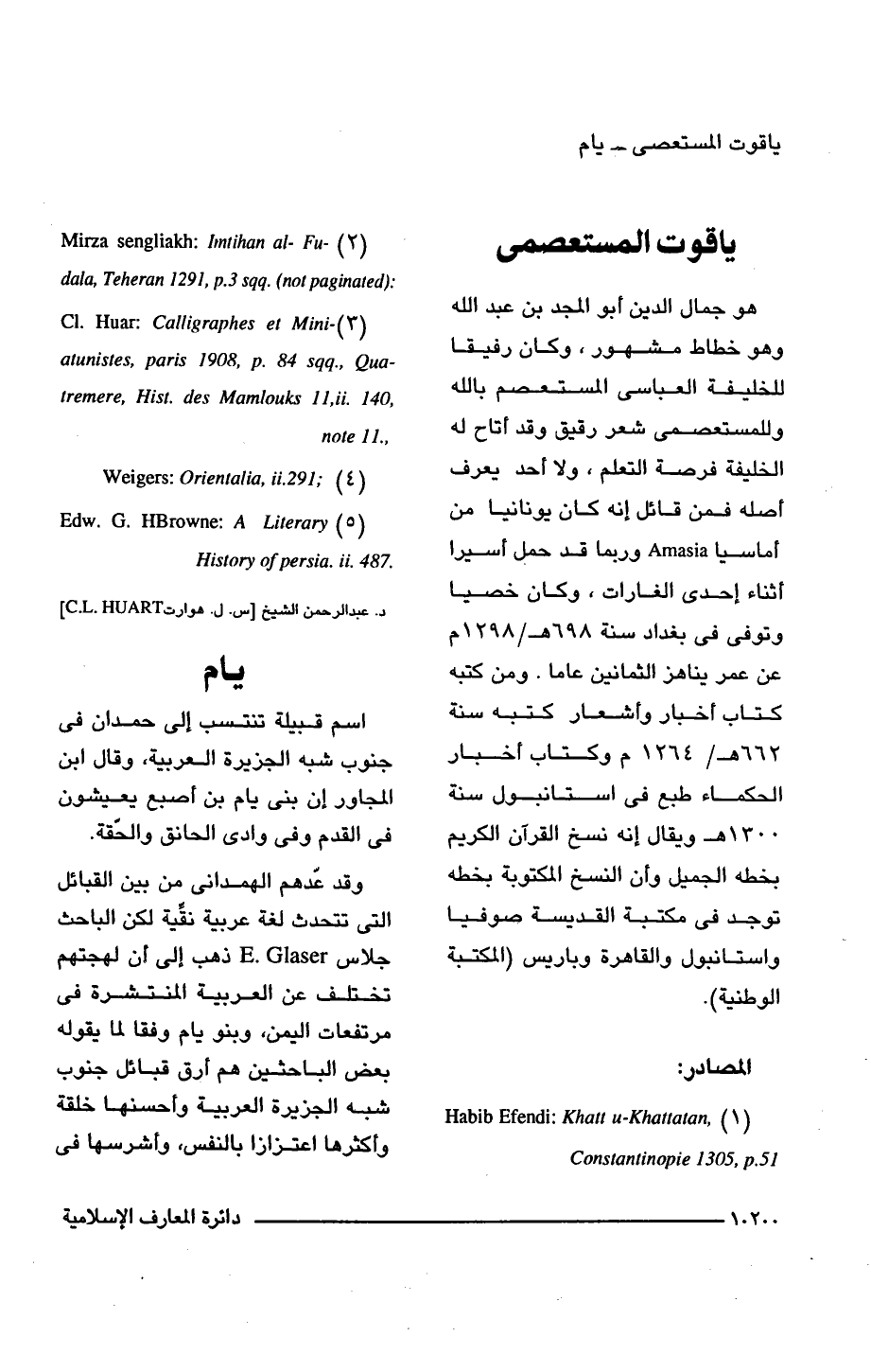 (3) Cl. Huar: Calligraphes el Miniatunistes, paris 1908, p. 84 sqq., Quatremere, Hist. des Mamlouks 1 I,ii. 140 note 1 l
