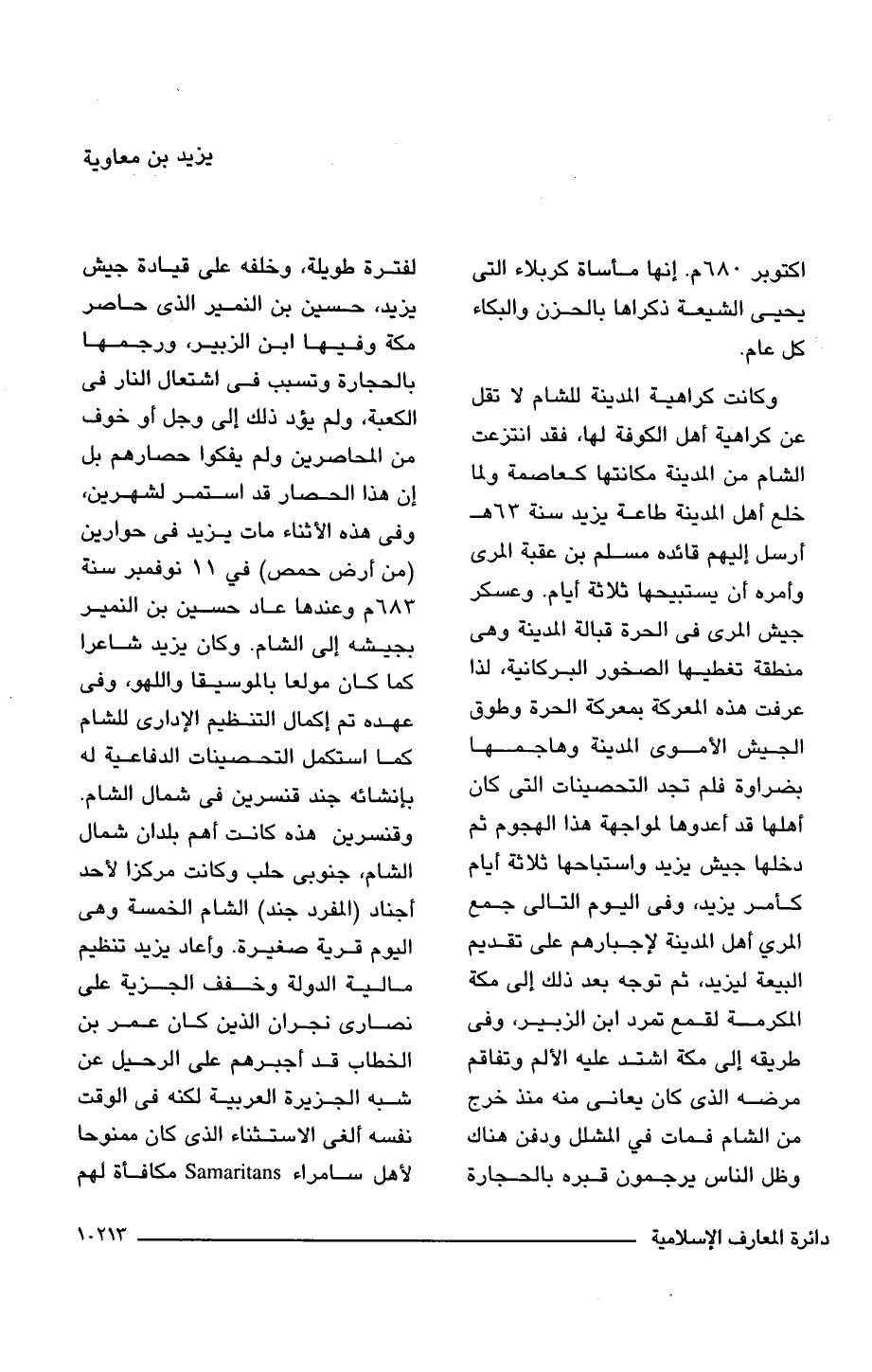 وكانت كراهية المدينة للشام لا تقل عن كراهية أهل الكوفة لها, فقد انتزعت الشام من المدينة مكانتها كعاصمة ولما خلع أهل المدينة طاعة يزيد سنة 63 هـ أرسل إليهم قائده مسلم بن عقبة المرى وأمره أن يستبيحها ثلاثة أيام. وعسكر جيش المرى فى الحرة قبالة المدينة وهى منطقة تغطيها الصخور البركانية، لذا عرفت هذه المعركة بمعركة الحرة وطوق الجيش الأموى المدينة وهاجمها بضراوة فلم تجد التحصينات التى كان أهلها قد أعدوها لمواجهة هذا الهجوم ثم دخلها جيش يزيد واستباحها ثلاثة أيام كأمر يزيد، وفى اليوم التالى جمع المري أهل المدينة لإجبارهم على تقديم البيعة ليزيد، ثم توجه بعد ذلك إلى مكة المكرمة لقمع تمرد ابن الزبير، وفى طريقه إلى مكة اشتد عليه الألم وتفاقم مرضه الذى كان يعانى منه منذ خرج من الشام فمات فى المشلل ودفن هناك وظل الناس يرجمون قبره بالحجارة لفترة طويلة، وخلفه على قيادة جيش يزيد، حسين بن النمير الذى حاصر مكة وفيها ابن الزبير، ورجمها بالحجارة وتسبب فى اشتعال النار فى الكعبة، ولم يؤد ذلك إلى وجل أو خوف من المحاصرين ولم يفكوا حصارهم بل إن هذا الحصار قد استمر لشهرين، وفى هذه الأثناء مات يزيد فى حوارين (من أرض حمص) فى 11 نوفمبر سنة 683 م وعندها عاد حسين بن النمير بجيشه إلى الشام. وكان يزيد شاعرا كما كان مولعا بالموسيقا واللهو، وفى عهده تم إكمال التنظيم الإدارى للشام كما استكمل التحصينات الدفاعية له بإنشائه جند قنسرين فى شمال الشام. وقنسرين هذه كانت أهم بلدان شمال الشام، جنوبى حلب وكانت مركزا لأحد أجناد (المفرد جند) الشام الخمسة وهى اليوم قرية صغيرة. وأعاد يزيد تنظيم مالية الدولة وخفف الجزية على نصارى نجران الذين كان عمر بن الخطاب قد أجبرهم على الرحيل عن شبه الجزيرة العربية لكنه فى الوقت نفسه ألغى الاستثناء الذى كان ممنوحا لأهل سامراء Samaritans مكافأة لهم