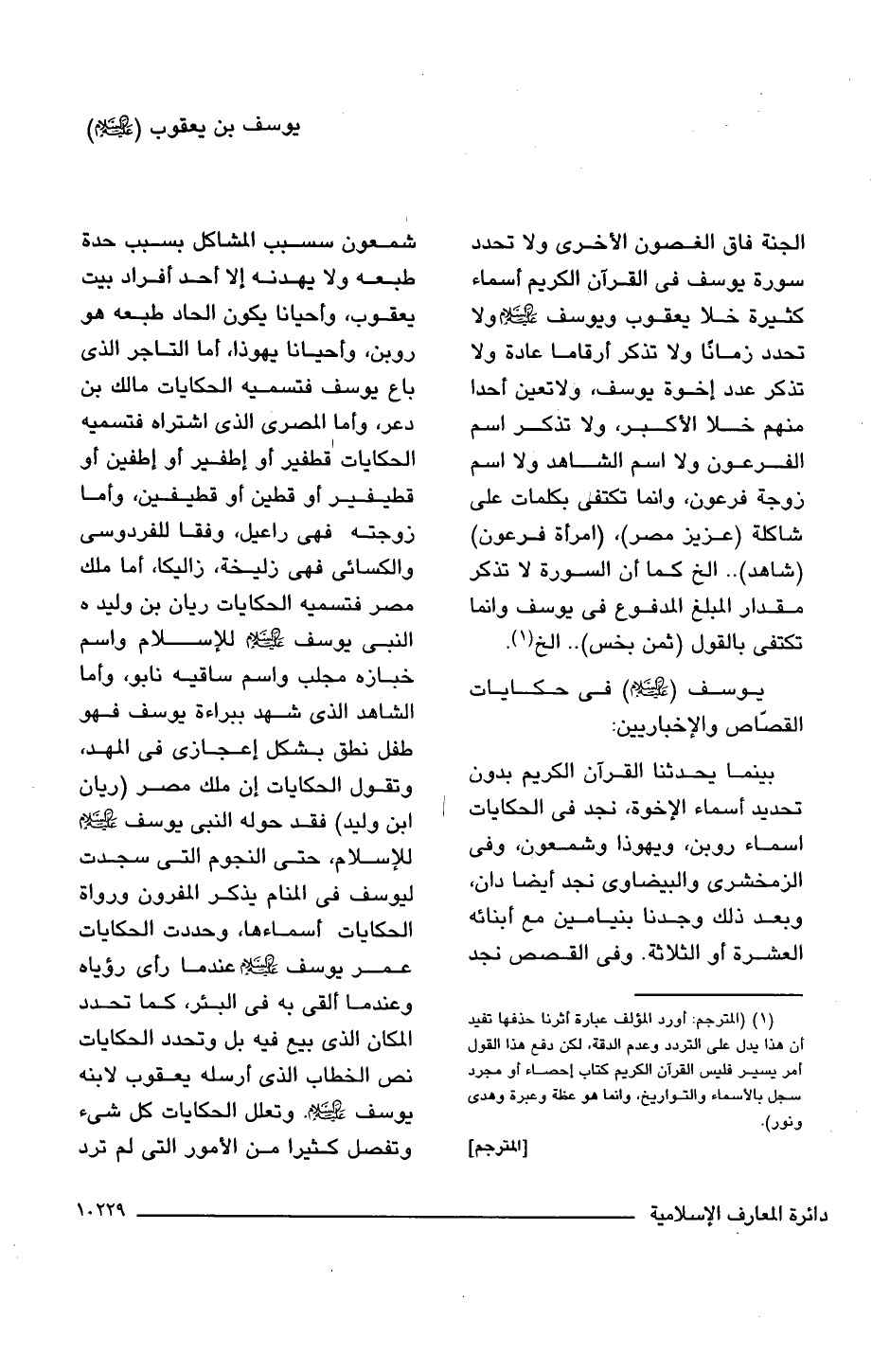 الجنة فاق الغصون الأخرى ولا تحدد سورة يوسف فى القرآن الكريم أسماء كثيرة خلا يعقوب ويوسف عليه السلام ولا تحدد زمانًا ولا تذكر أرقاما عادة ولا تذكر عدد إخوة يوسف، ولا تعين أحدا منهم خلا الأكبر، ولا تذكر اسم الفرعون ولا اسم الشاهد ولا اسم زوجة فرعون، وإنما تكتفى بكلمات على شاكلة (عزيز مصر)، (امرأة فرعون) (شاهد). . الخ كما أن السورة لا تذكر مقدار المبلغ المدفوع فى يوسف وإنما تكتفى بالقول (ثمن بخس). . الخ (¬1).