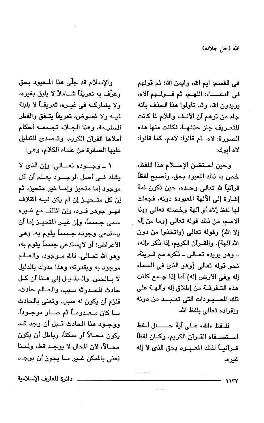 والإِسلام قد جلّى هذا المعبود بحق وعرف به تعريفاً شاملاً لا يليق بغيره، ولا يشاركه فى غيره، تعريفاً لا بلبلة فيه ولا غموض، تعريفاً يتفق والفطر السليمة، وهذا الجلاء تجمعه أحكام أملاها القرآن الكريم، وتصدى للتدليل عليها الصفوة من علماء الكلام، وهى: