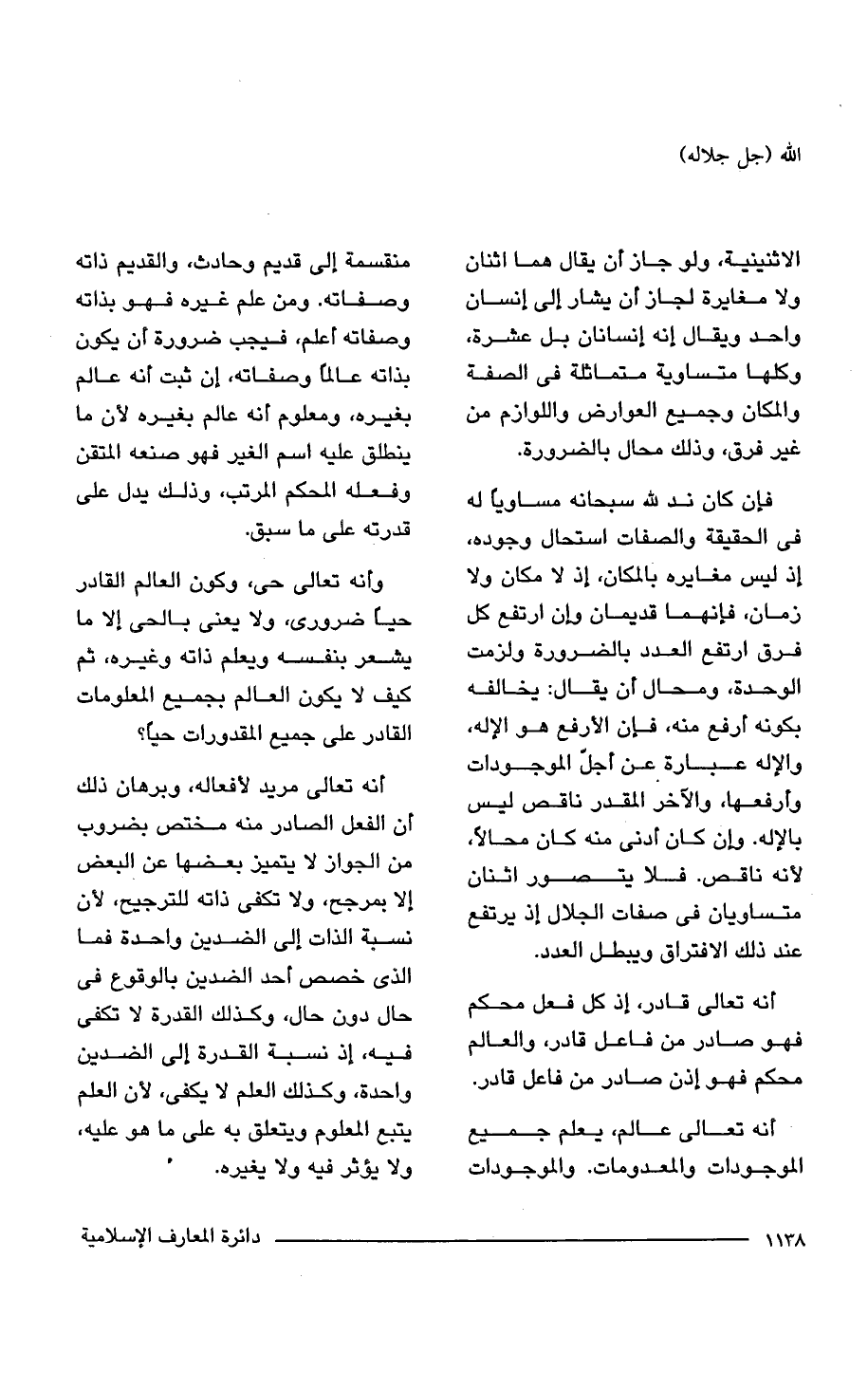 فإن كان ند لله سبحانه مساويًا له فى الحقيقة والصفات استحال وجوده، إذ ليس مغايره بالمكان، إذ لا مكان ولا زمان، فإنهما قديمان وإن ارتفع كل فرق ارتفع العدد بالضرورة ولزمت الوحدة، ومحال أن يقال: يخالفه بكونه أرفع منه، فإن الأرفع هو الإله، والإله عبارة عن أجلّ الموجودات وأرفعها، والآخر المقدر ناقص ليس بالإله. وإن كان أدنى منه كان محالًا، لأنه ناقص. فلا يتصور اثنان متساويان فى صفات الجلال إذ يرتفع عند ذلك الافتراق ويبطل العدد.