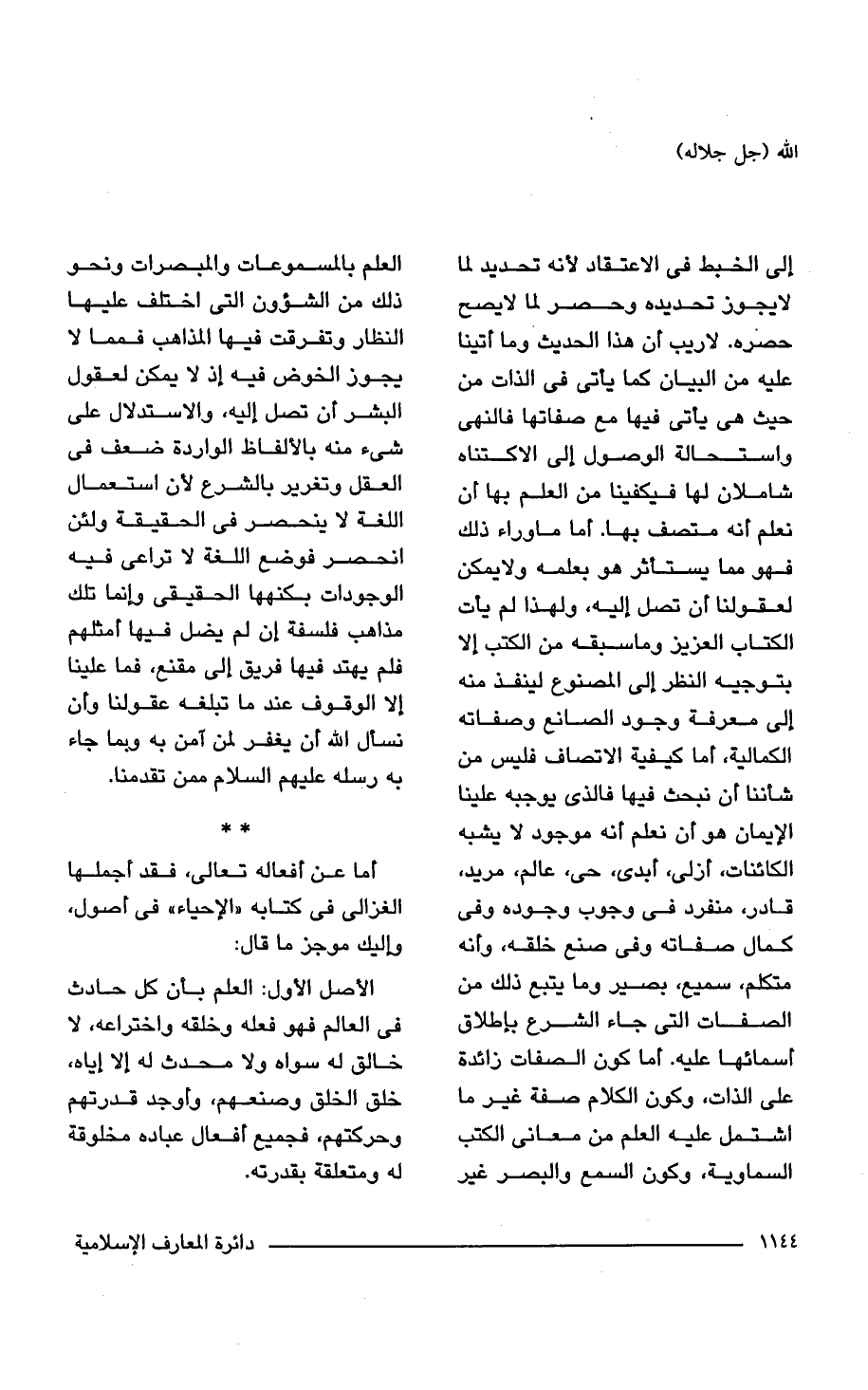 أما عن أفعاله تعالى، فقد أجملها الغزالى فى كتابه "الإحياء" فى أصول، وإليك موجز ما قال: