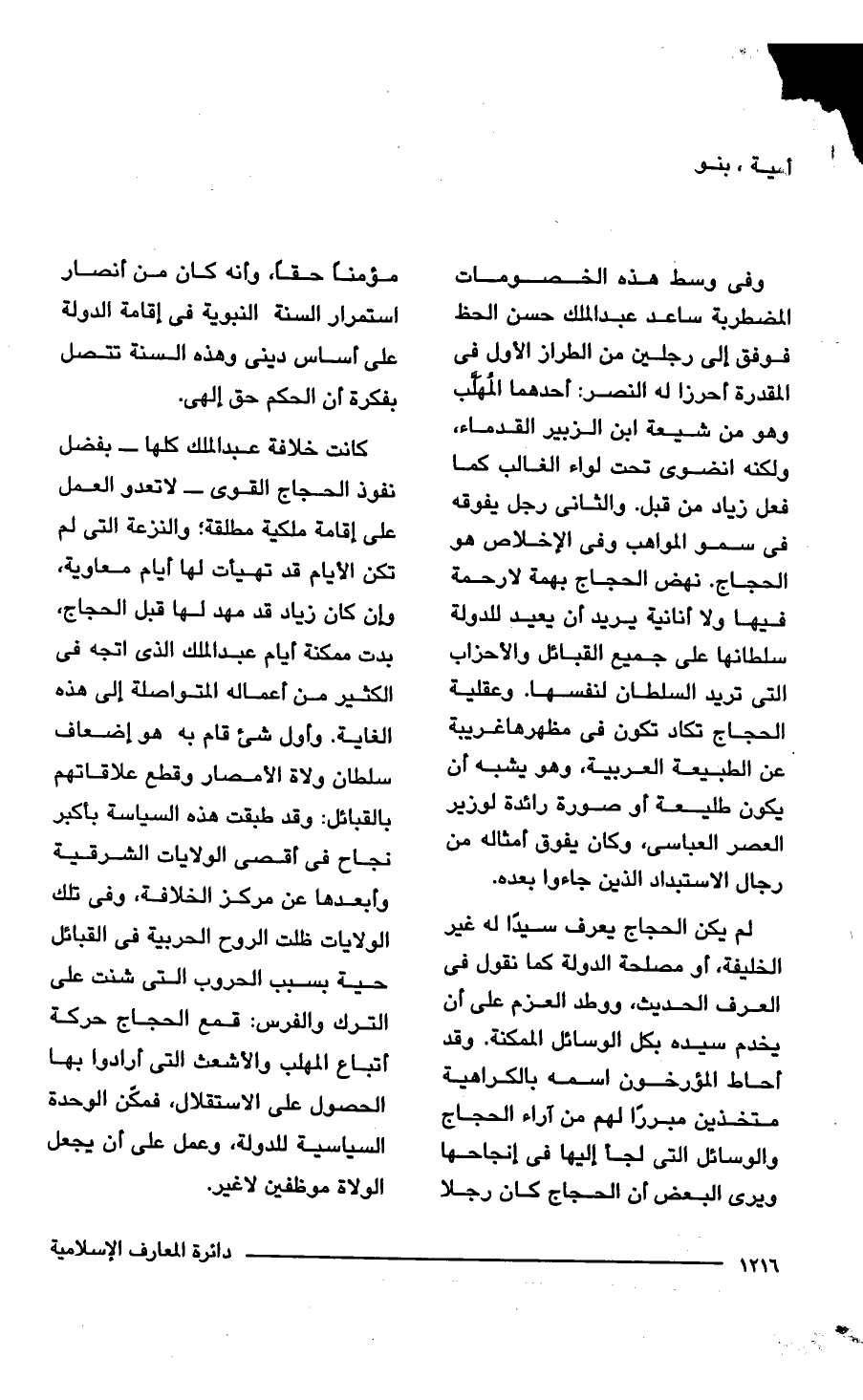 وفى وسط هذه الخصومات المضطربة ساعد عبد الملك حسن الحظ فوفق إلى رجلين من الطراز الأول فى المقدرة أحرزا له النصر: أحدهما المُهَلَّب وهو من شيعة ابن الزبير القدماء، ولكنه انضوى تحت لواء الغالب كما فعل زياد من قبل. والثانى رجل يفوقه فى سمو المواهب وفى الإخلاص هو الحجاج. نهض الحجاج بهمة لا رحمة فيهما ولا أنانية يريد أن يعيد للدولة سلطانها على جميع القبائل والأحزاب التى تريد السلطان لنفسها. وعقلية الحجاج تكاد تكون فى مظهرها غريبة عن الطبيعة العربية، وهو يشبه أن يكون طليعة أو صورة رائدة لوزير العصر العباسى، وكان يفوق أمثاله من رجال الاستبداد الذين جاءوا بعده.