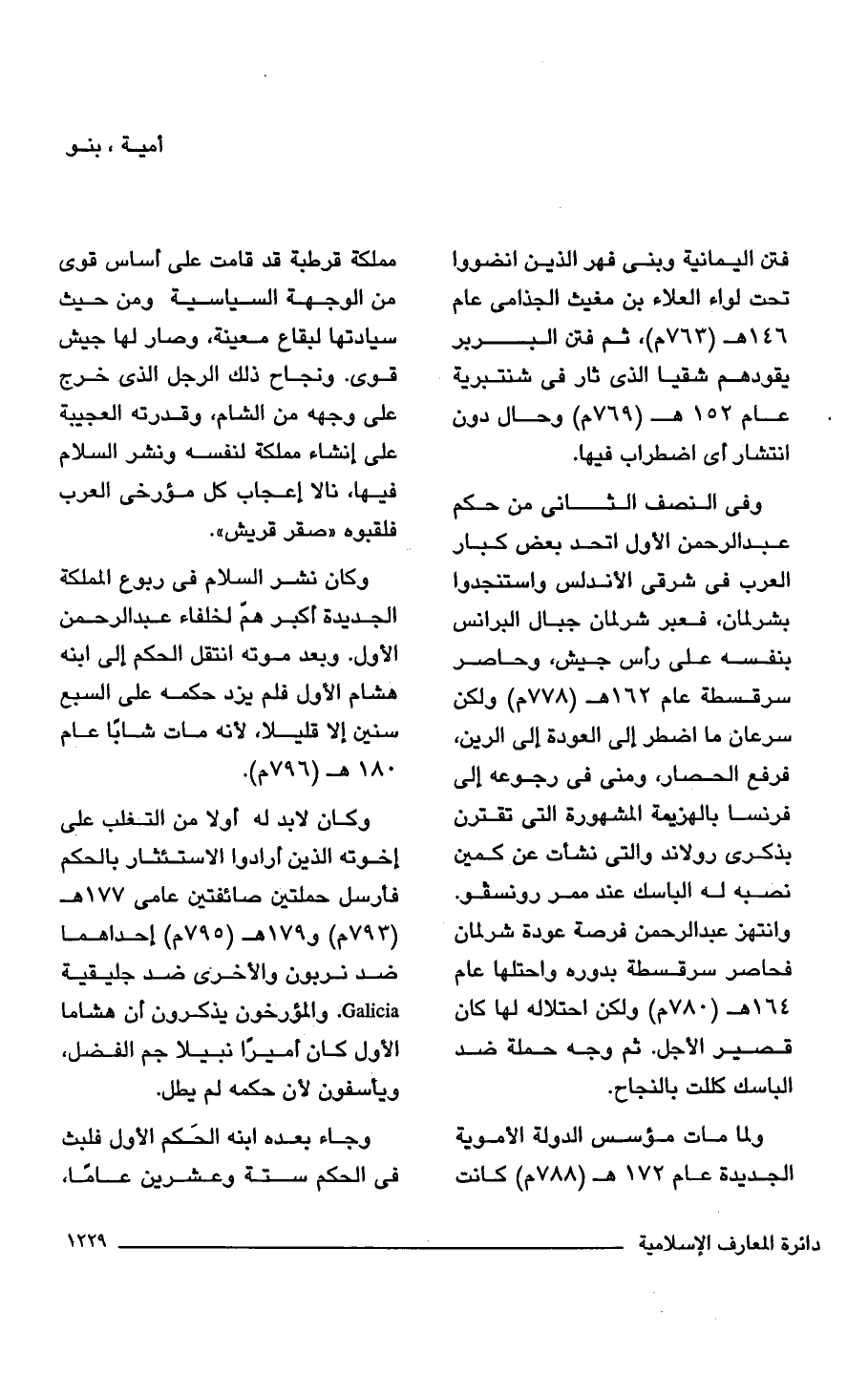وكان نشر السلام فى ربوع المملكة الجديدة أكبر همّ لخلفاء عبد الرحمن الأول. وبعد موته انتقل الحكم إلى ابنه هشام الأول فلم يزد حكمه على السبع سنين إلا قليلا، لأنه مات شابًا عام 180 هـ (796 م).