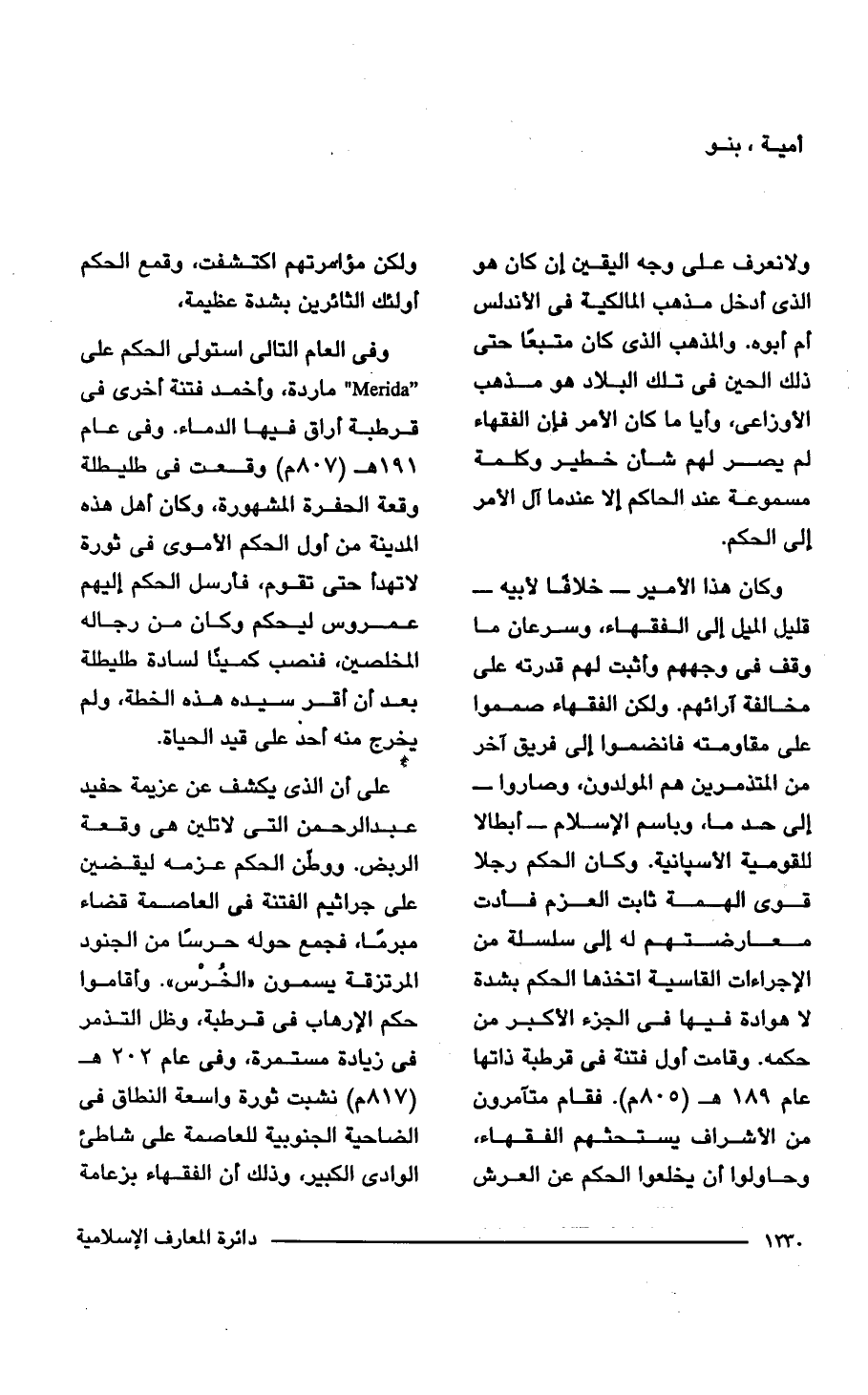 وكان هذا الأمير -خلافًا لأبيه- قليل الميل إلى الفقهاء، وسرعان ما وقف فى وجههم وأثبت لهم قدرته على مخالفة آرائهم. ولكن الفقهاء صمموا على مقاومته فانضموا إلى فريق آخر من المتذمرين هم المولدون، وصاروا -إلى حد ما، وباسم الإسلام- أبطالا للقومية الأسبانية. وكان الحكم رجلا قوى الهمة ثابت العزم فأدت معارضتهم له إلى سلسلة من الإجراءات القاسية اتخذها الحكم بشدة لا هوادة فيها فى الجزء الأكبر من حكمه. وقامت أول فتنة فى قرطبة ذاتها عام 189 هـ (805 م). فقام متآمرون من الأشراف يستحثهم الفقهاء، وحاولوا أن يخلعوا الحكم عن العرش ولكن مؤامرتهم اكتشفت، وقمع الحكم أولئك الثائرين بشدة عظيمة،