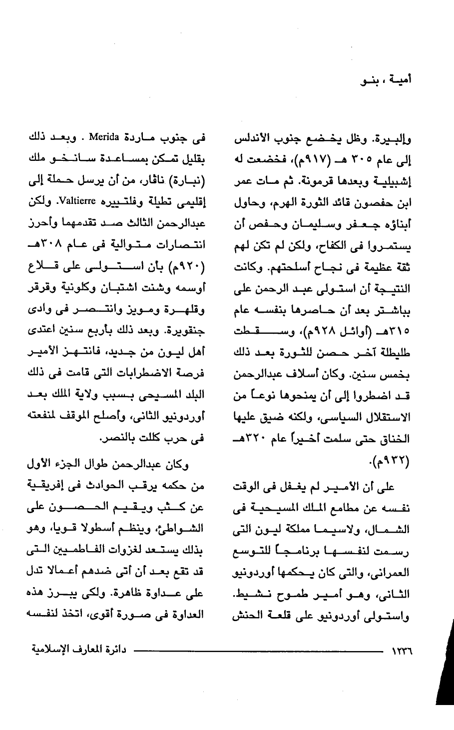 وإلبيرة. وظل يخضع جنوب الأندلس إلى عام 305 هـ (917 م)، فخضعت له إشبيلية وبعدها قرمونة. ثم مات عمر ابن حفصون قائد الثورة الهرم، وحاول أبناؤه جعفر وسليمان وحفص أن يستمروا فى الكفاح، ولكن لم تكن لهم ثقة عظيمة فى نجاح أسلحتهم. وكانت النتيجة أن استولى عبد الرحمن على بباشتر بعد أن حاصرها بنفسه عام 315 هـ (أوائل 928 م)، وسقطت طليطلة آخر حصن للثورة بعد ذلك بخمس سنين. وكان أسلاف عبد الرحمن قد اضطروا إلى أن يمنحوها نوعًا من الاستقلال السياسى، ولكنه ضيق عليها الخناق حتى سلمت أخيراً عام 320 هـ (932 م).
