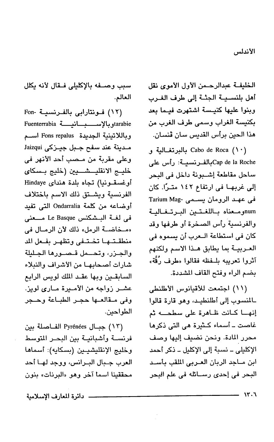 (10) Cabo de Roca بالبرتغالية و Cap de la Roche بالفرنسية: رأس على ساحل مقاطعة إشبونة داخل في البحر إلى غربها في ارتفاع 142 مترًا. كان في عهد الرومان يسمى - Tarium Mag num ومعناه باللغتين البرتغالية والفرنسية رأس الصخرة أو طرفها وقد كان في استطاعة العرب أن يسموه في العربية بما يطابق هذا الاسم ولكنهم آثروا تعريبه بلفظه فقالوا "طرف رُقة" بضم الراء وفتح القاف المشددة.