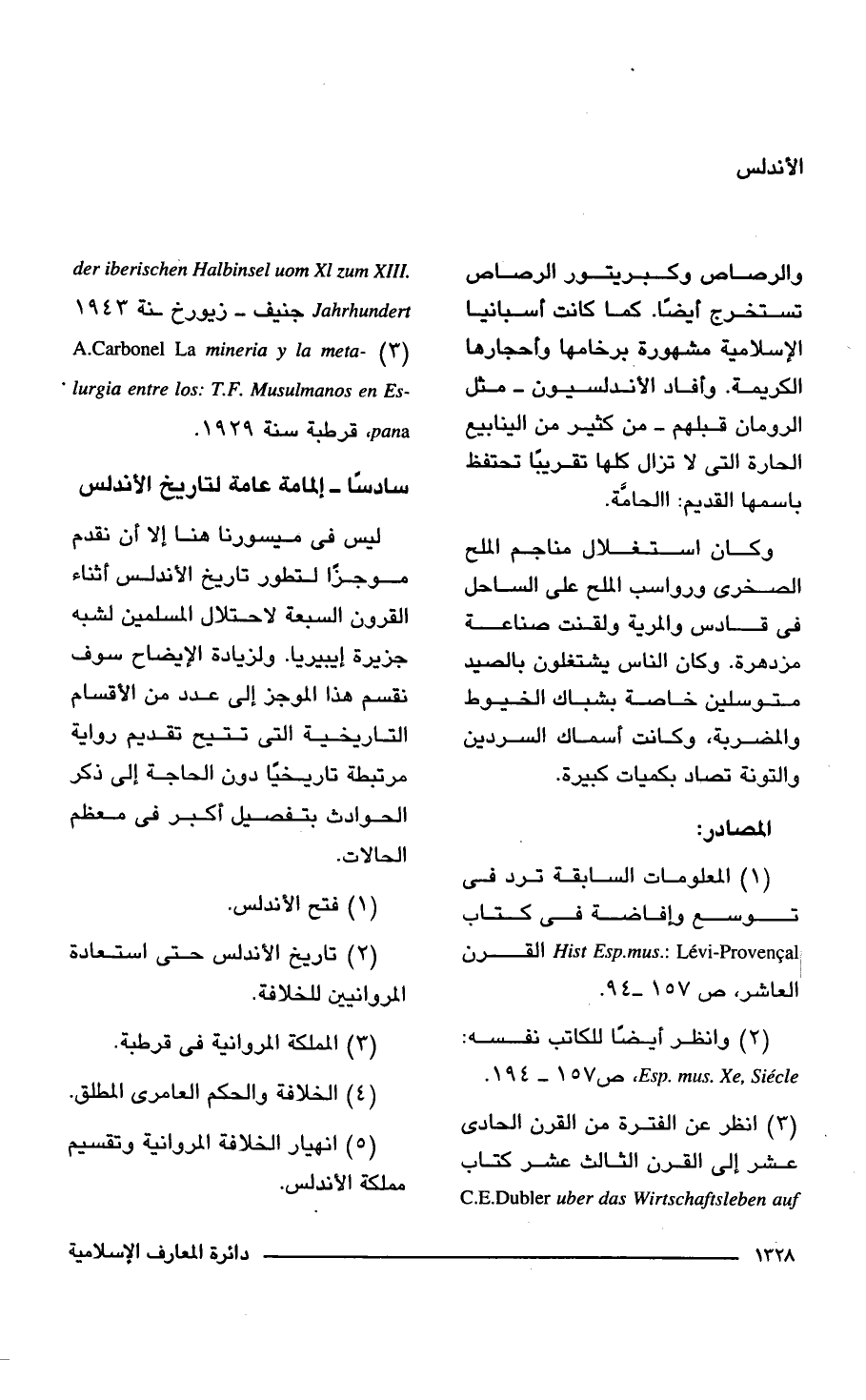 (3) انظر عن الفترة من القرن الحادي عشر إلى القرن الثالث عشر كتاب C.E.Dubler uber das Wirtschaftsleben auf der iberischen Halbinsel uom Xl zum XIlI. Jahrhundert جنيف- زيورخ سنة 1943