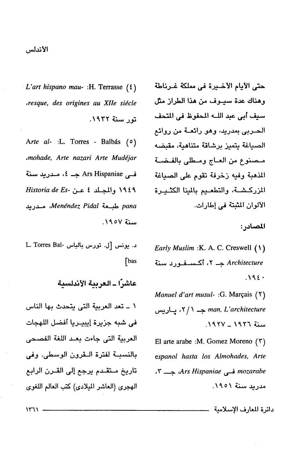 (5) Arte al-: L. Torres - Balbas mohade, Arte nazari Arte Mudjar في Ars Hispaniae جـ 4، مدريد سنة 1949 والمجلد 4 عن Historia de Es- pana . طبعة Menendez pidal مدريد سنة 1957.