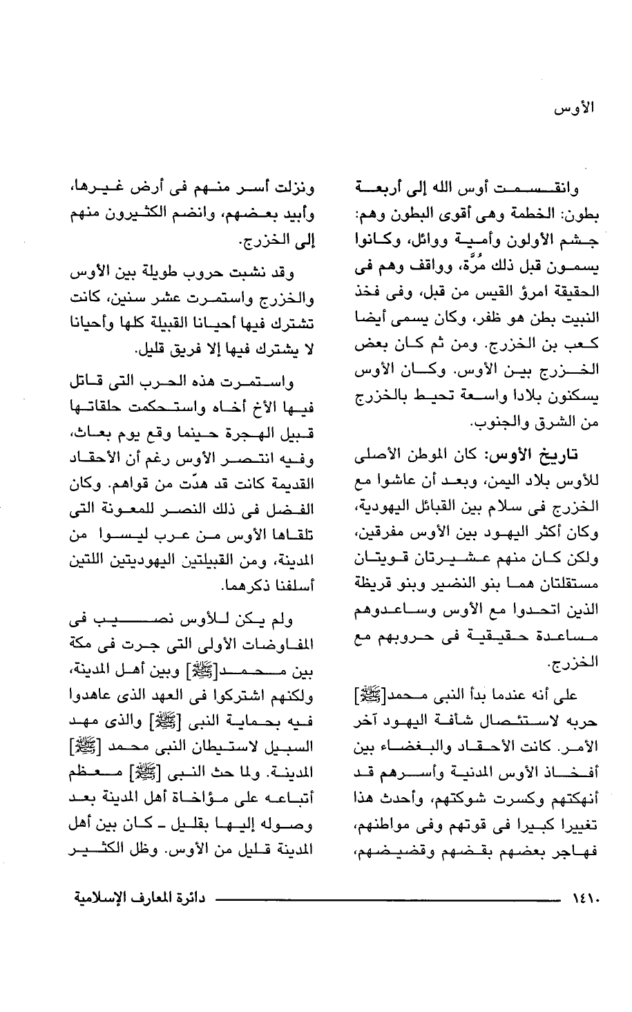 تاريخ الأوس: كان الموطن الأولى للأوس بلاد اليمن، وبعد أن عاشوا مع الخزرج في سلام بين القبائل اليهودية، وكان أكثر اليهود بين الأوس مفرقين، ولكن كان منهم عشيرتان قويتان مستقلتان هما بنو النضير وبنو قريظة الذين اتحدوا مع الأوس وساعدوهم مساعدة حقيقية في حروبهم مع الخزرج.