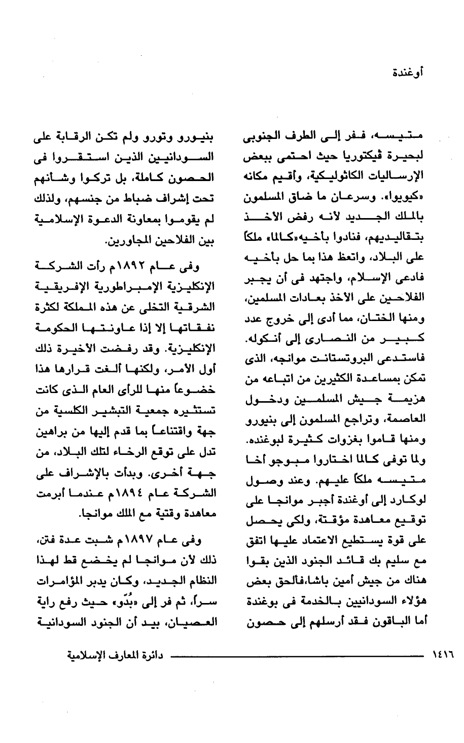 فاستدعى البروتستانت موانجه، الذي تمكن بمساعدة الكثيرين من اتباعه من هزيمة جيش المسلمين ودخول العاصمة، وتراجع المسلمون إلى بنيورو ومنها قاموا بغزوات كثيرة لبوغنده. ولما توفي كالما اختاروا مبوجو أخا متيسه ملكا عليهم. وعند وصول لوكارد إلى أوغندة أجبر موانجا على توقيع معاهدة مؤقتة، ولكى يحصل على قوة يستطيع الاعتماد عليها اتفق مع سليم بك قائد الجنود الذين بقوا هناك من جيش أمين باشا، فالحق بعض هؤلاء السودانيين بالخدمة في بوغندة أما الباقون فقد أرسلهم إلى حصون بنيورو وتورو ولم تكن الرقابة على السودانيين الذين استقروا في الحصون كاملة، بل تركوا وشأنهم تحت إشراف ضباط من جنسهم، ولذلك لم يقوموا بمعاونة الدعوة الإِسلامية بين الفلاحين المجاورين.