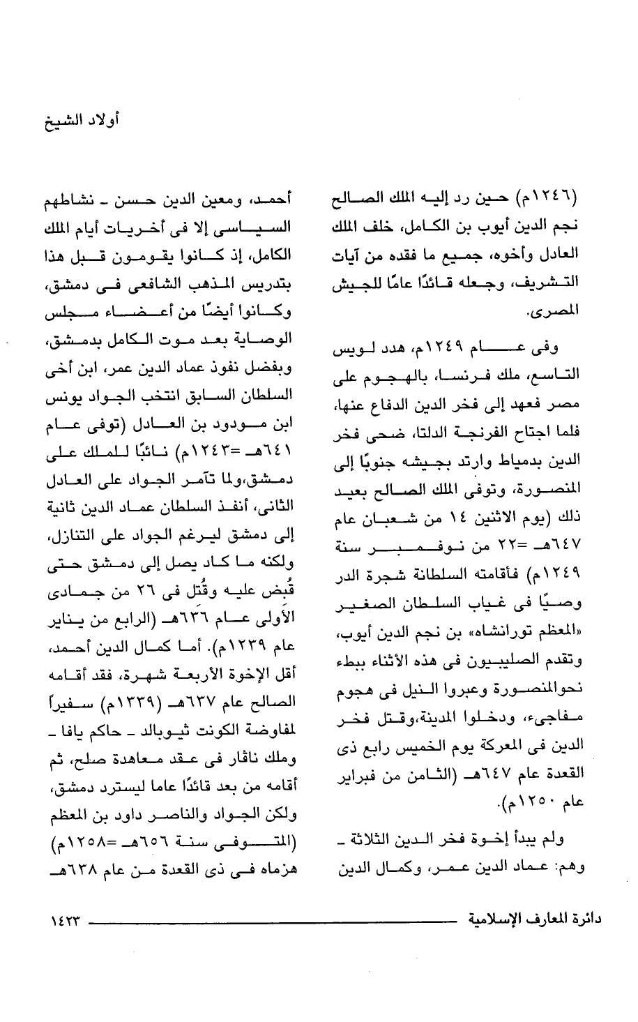 ولم يبدأ إخوة فخر الدين الثلاثة -وهم: عماد الدين عمر، وكمال الدين أحمد، ومعين الدين حسن- نشاطهم السياسي إلا في أخريات أيام الملك الكامل، إذ كانوا يقومون قبل هذا بتدريس المذهب الشافعي في دمشق، وكانوا أيضًا من أعضاء مجلس الوصاية بعد موت الكامل بدمشق، وبفضل نفوذ عماد الدين عمر، ابن أخي السلطان السابق انتخب الجواد يونس بن مودود بن العادل (توفي عام 641 هـ = 1243 م) نائبًا للملك على دمشق، ولما تآمر الجواد على العادل الثاني، أنفذ السلطان عماد الدين ثانية إلى دمشق ليرغم الجواد على التنازل، ولكنه ما كاد يصل إلى دمشق حتى قُبض عليه وقتل في 26 من جمادى الأولى 636 هـ (الرابع من يناير عام 1239 م). أما كمال الدين أحمد، أقل الإخوة الأربعة شهرة، فقد أقامه الصالح عام 637 هـ (1339 م) سفيرًا لمفاوضة الكونت ثيوبالد -حاكم يافا- وملك نافار في عقد معاهدة صلح، ثم أقامه من بعد قائدًا عاما ليسترد دمشق، ولكن الجواد والناصر داود بن المعظم (المتوفى سنة 656 هـ = 1258 م) هزماه في ذي القعدة من عام 638 هـ