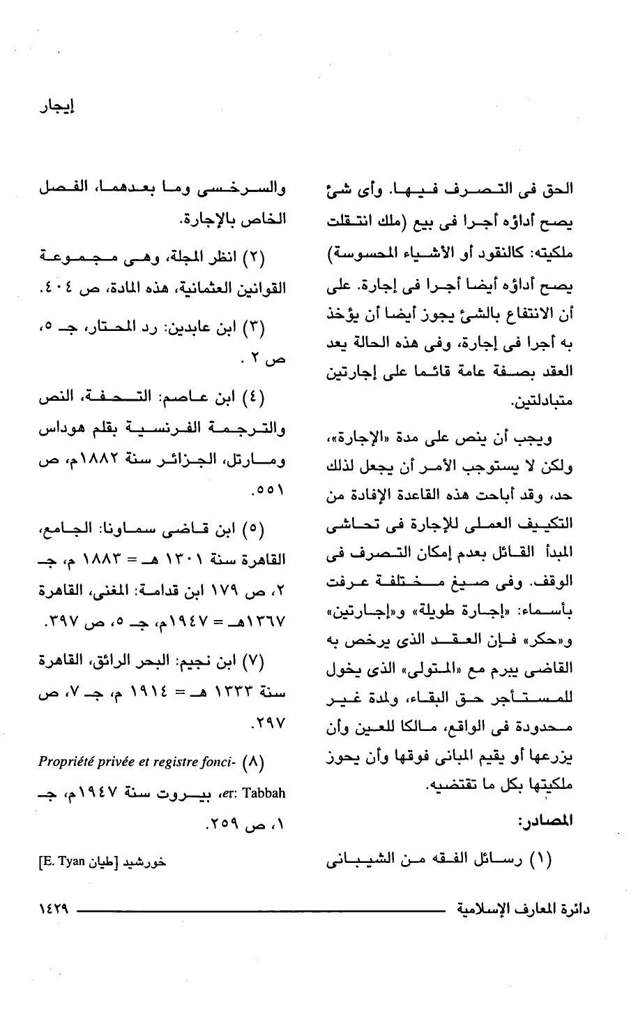 (8) Propriete privee et registre fonci- er: Tabbah، بيروت سنة 1947 م، جـ 1، ص 259.