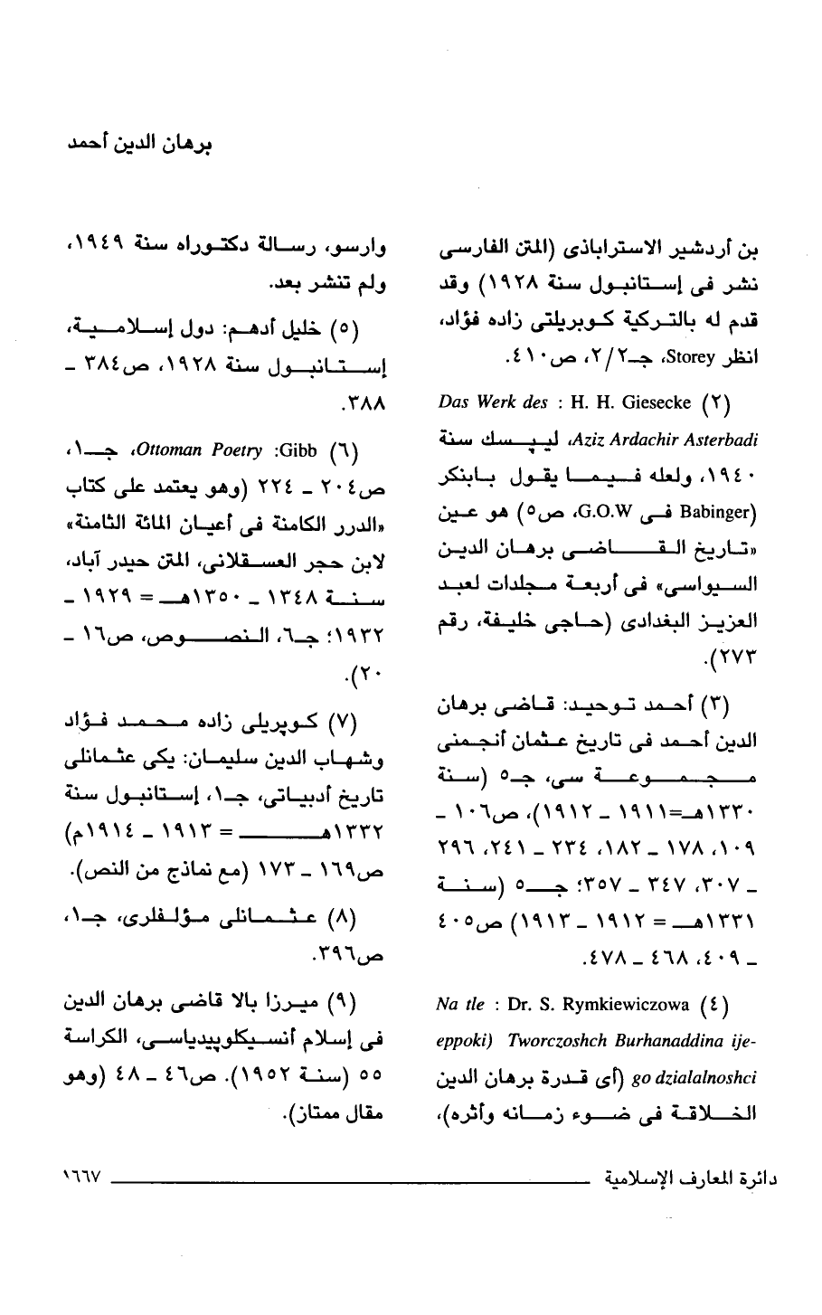 (3) أحمد توحيد: قاضى برهان الدين أحمد في تاريخ عثمان أنجمنى مجموعة سى، جـ 5 (سنة 1330 هـ = 1911 - 1912)، ص 106 - 178, 109 - 234, 182 - 296, 241 - 307, 347 - 357؛ جـ 5 (سنة 1331 هـ = 1912 - 1913) ص 405 - 409, 468 - 478.