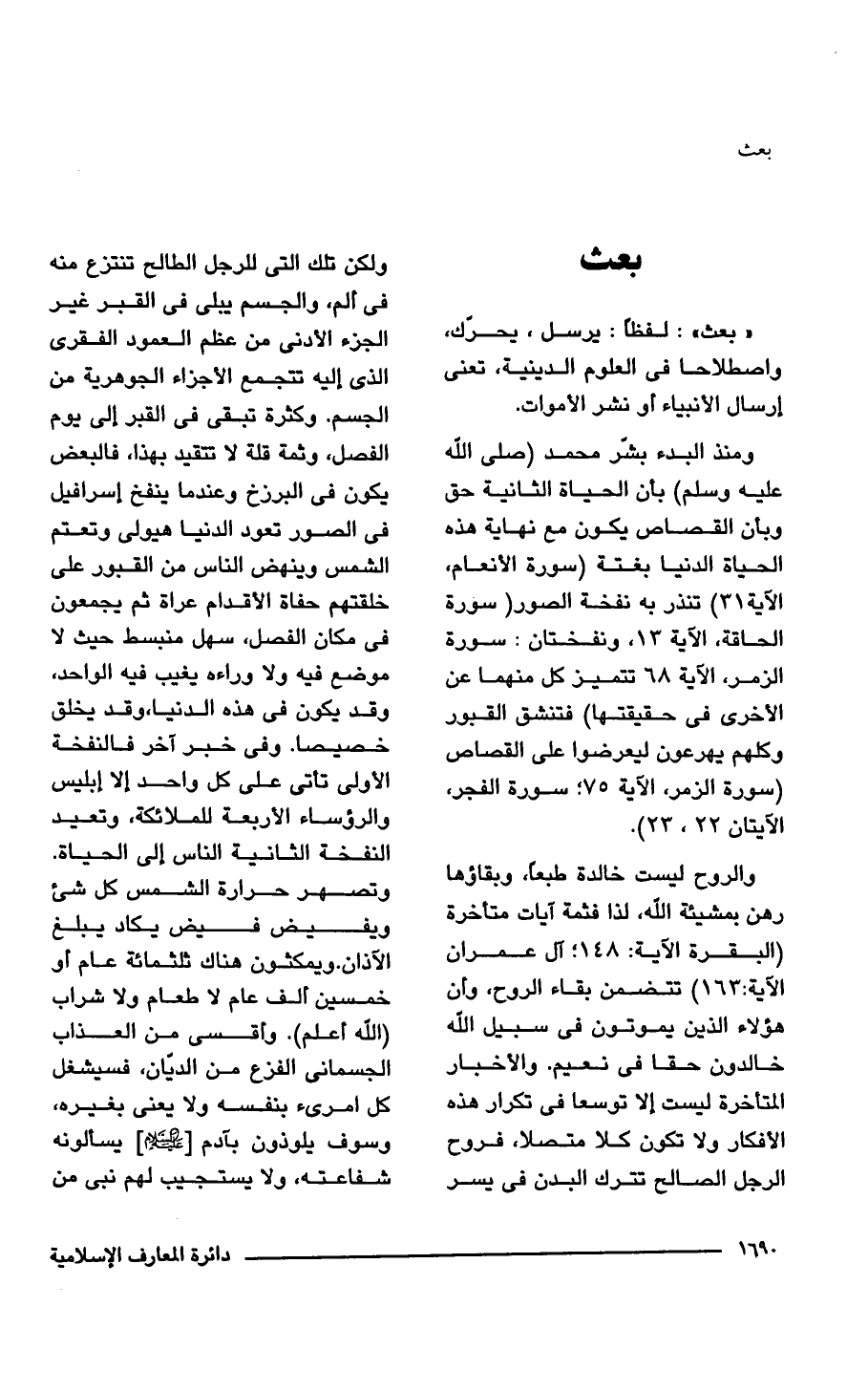 " بعث": لفظًا: يرسل، يحرك، واصطلاحا في العلوم الدينية، تعنى إرسال الأنبياء أو نشر الأموات.