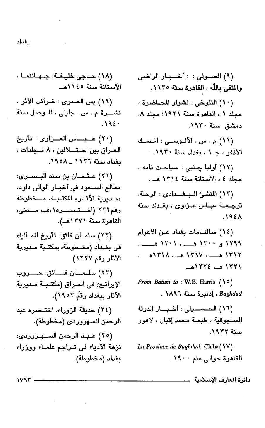 (13) المنشئ البغدادي: الرحلة، ترجمة عباس عزاوى، بغداد سنة 1948.